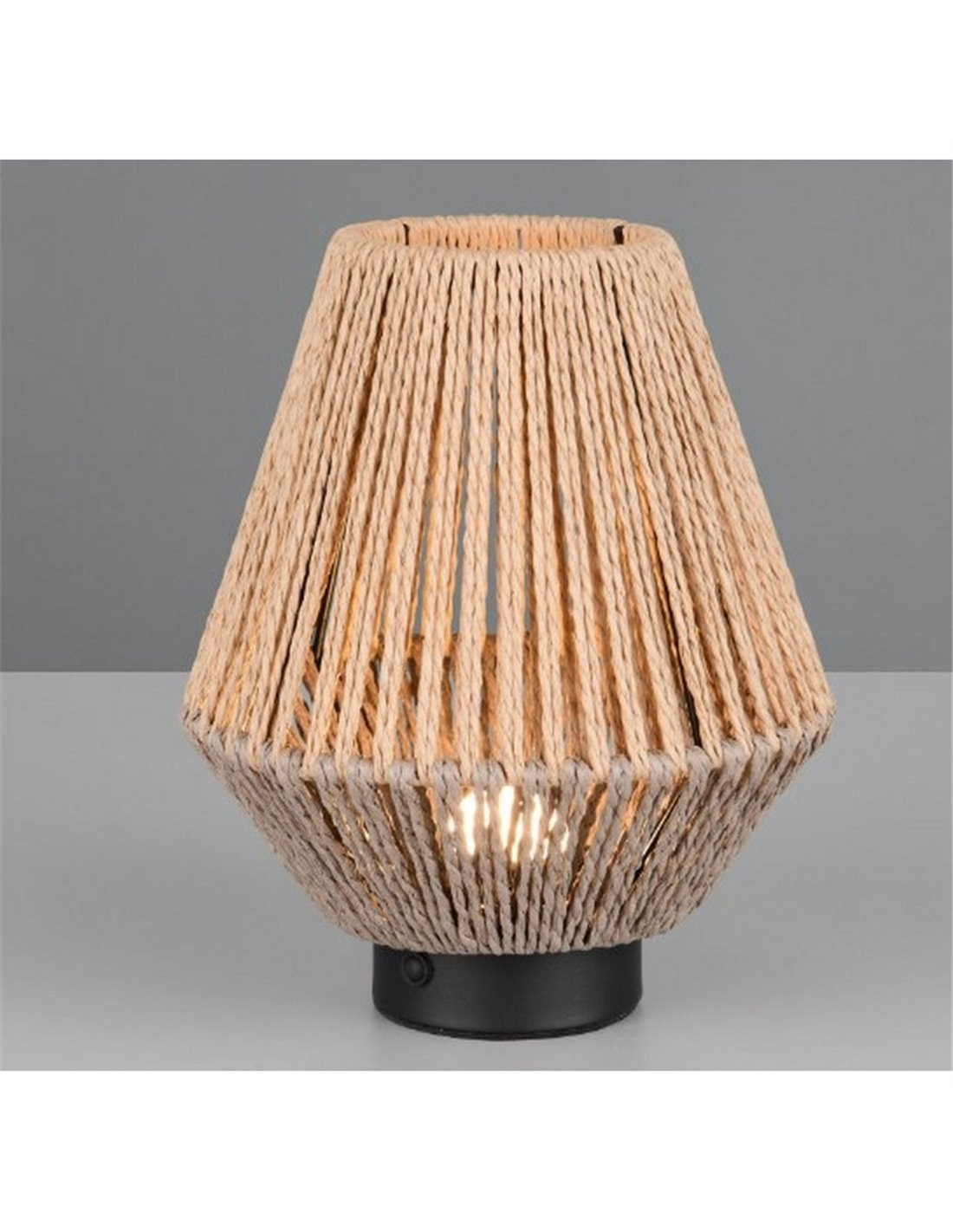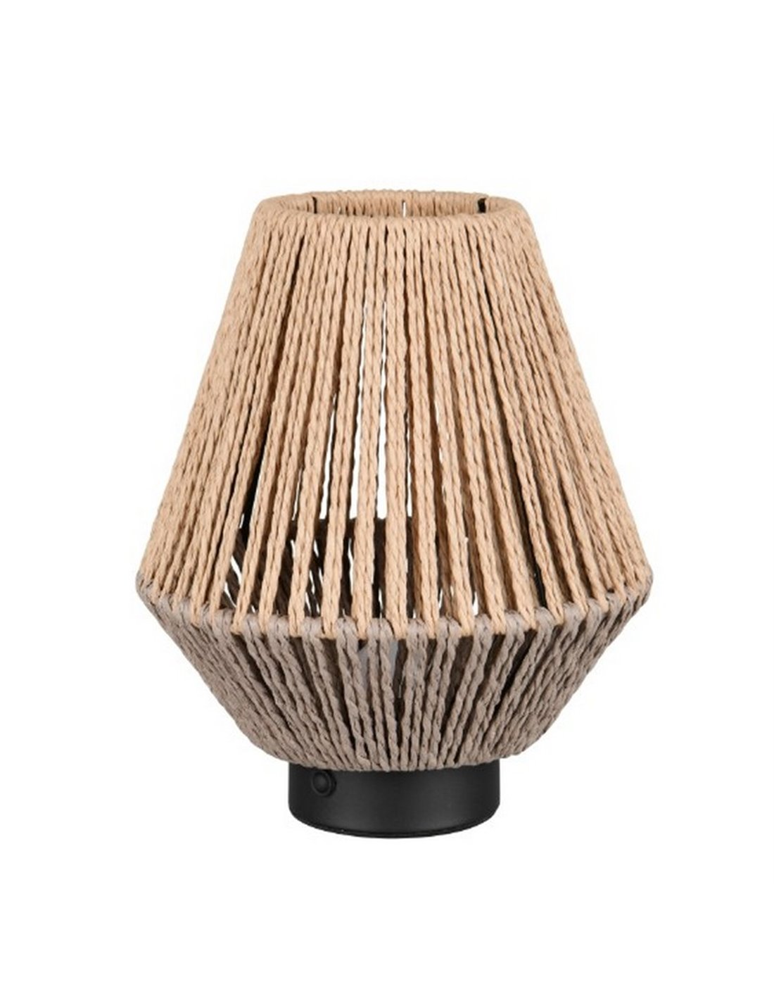 Die Tischlampe LIRA aus naturbelassener Faser bietet eine wiederaufladbare Batterie, Touchfunktion mit 4 Intensitätsstufen und eine Leistung von 1,5W 140lm bei 3000K. Ideal zur Schaffung einladender Atmosphären. Zertifizierung IP20.