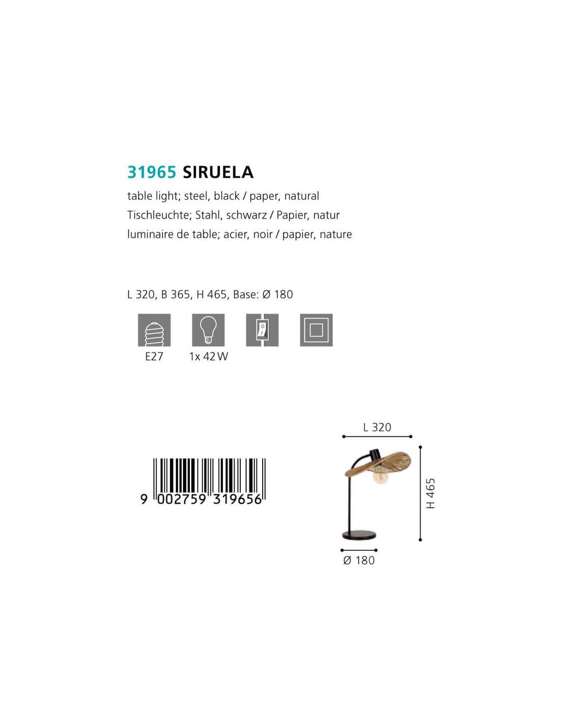 Die Tischlampe SIRUELA bietet ein einzigartiges Design, das die Rustikalität natürlicher Materialien mit der Modernität von schwarzem Stahl vereint. Mit den Abmessungen 32 cm Länge, 36,5 cm Höhe und 46,5 cm Tiefe ist diese Lampe perfekt, um jedem Winkel des Hauses, sei es auf einem Nachttisch, Schreibtisch oder Regal, einen eleganten und einladenden Akzent zu verleihen.
