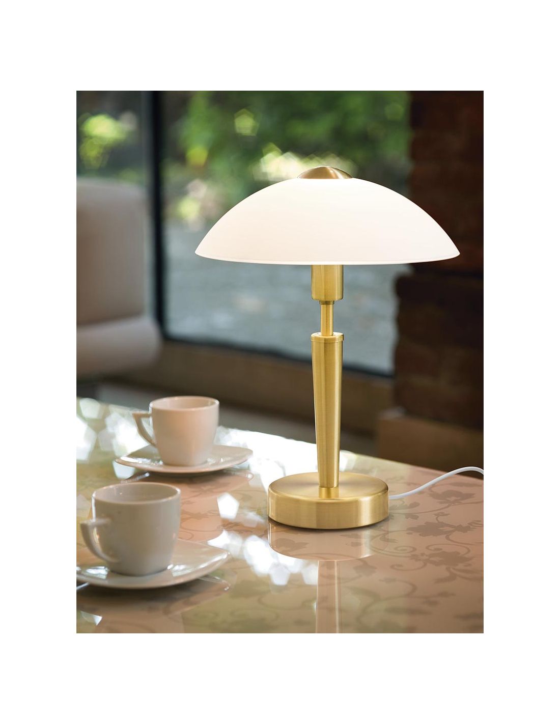 Die Tischlampe SOLO 1 kombiniert ein anspruchsvolles Design mit Funktionalität, und ist eine hervorragende Wahl für jedes Zuhause. Mit einer Stahlbasis in Messing-Matt und einem runden, satinweißen Glasschirm passt diese Lampe zu verschiedenen Einrichtungsstilen und verleiht jedem Raum einen Hauch von Eleganz.