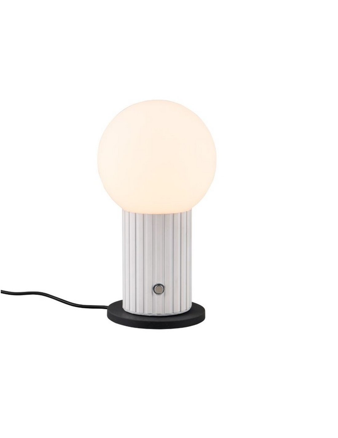Die weiße TAURIS besticht durch ihr klares und vielseitiges Design, perfekt zur Beleuchtung von Räumen, in denen eine warme und elegante Beleuchtung ohne Kabel gewünscht wird. Ihr weiß-mattes Gehäuse kombiniert mit einem opalenen Glasball, der das Licht gleichmäßig streut.