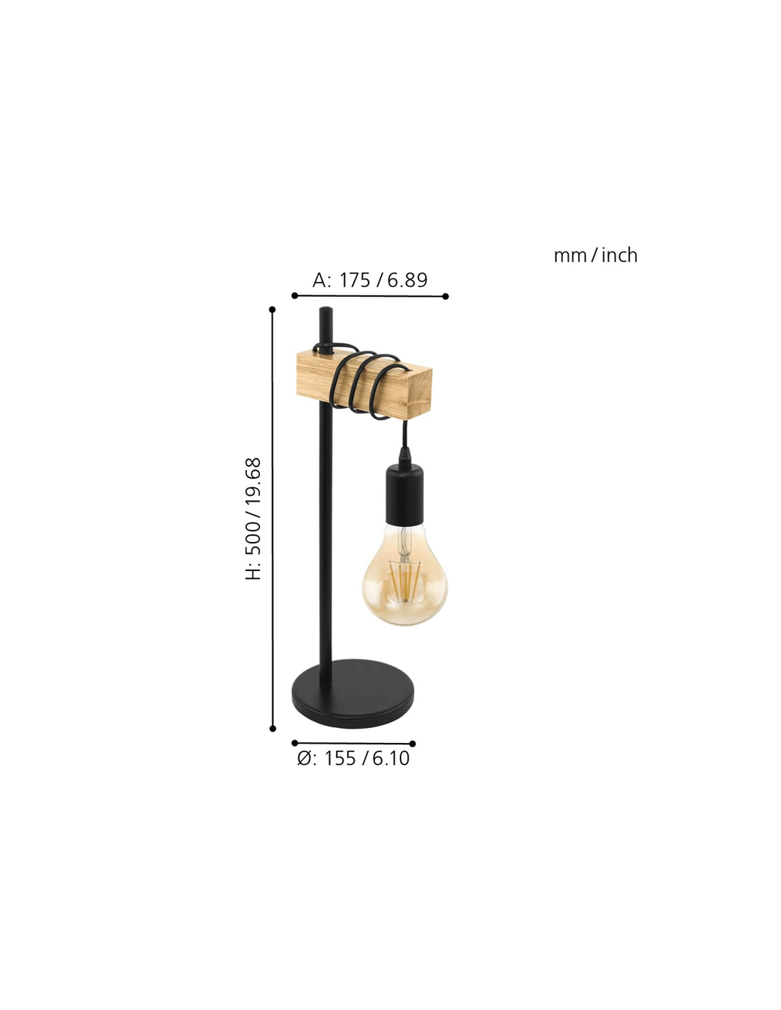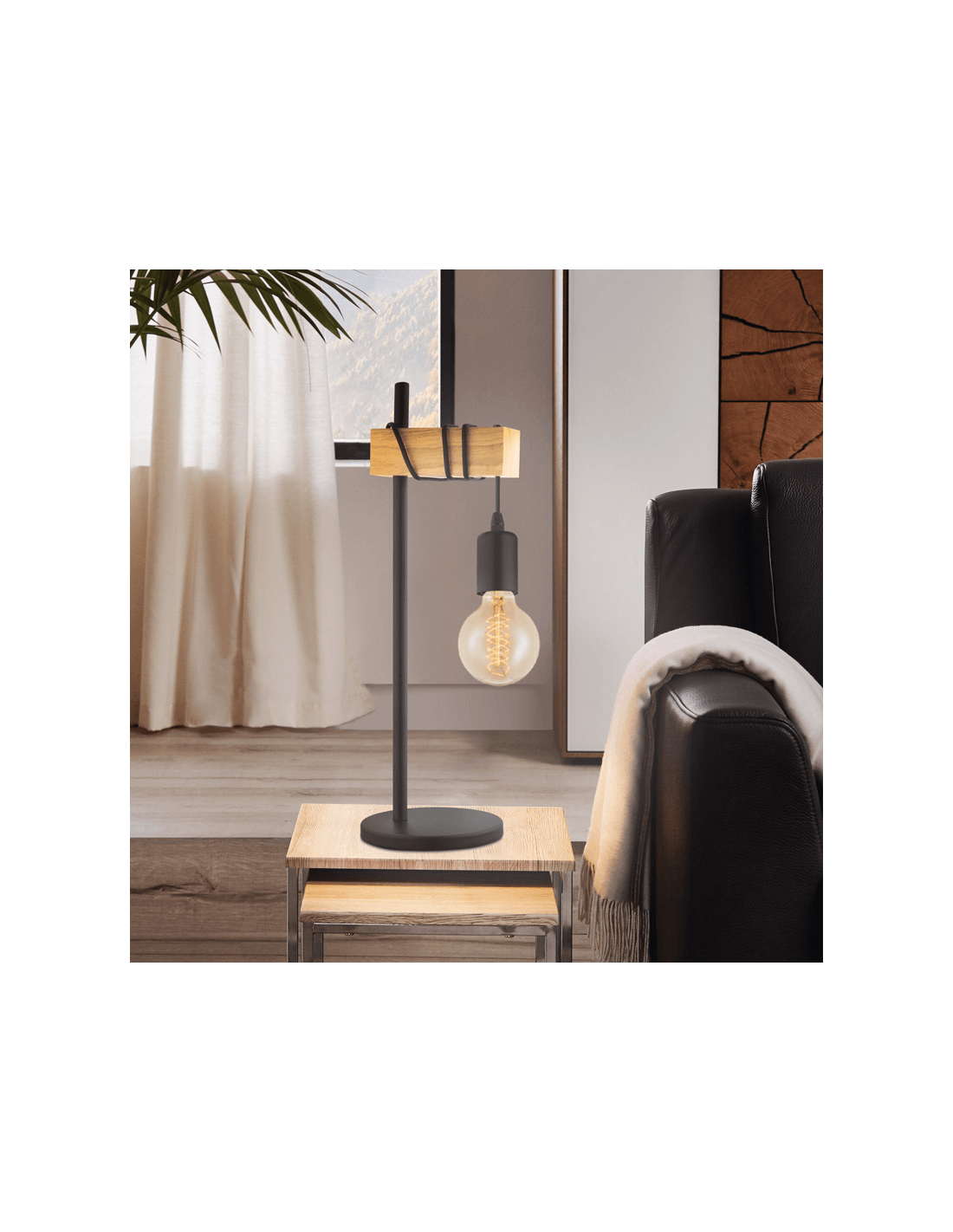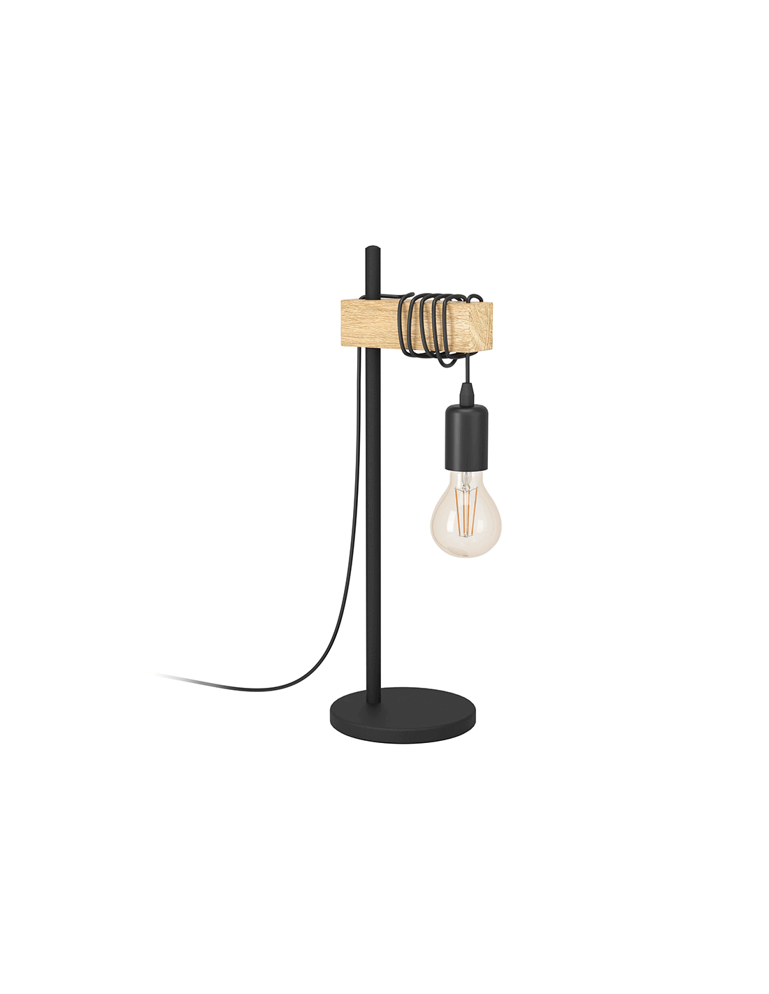 Tischlampe aus Holz und schwarzem Stahl mit 1 hängender Glühbirne aus der Townshend-Kollektion von Eglo Illuminação.