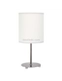 Die weiße Tischlampe Nicole hat einen modernen runden Textilschirm und einen silbernen Metallkörper. Für ihren Betrieb benötigt sie 1 LED E14-Glühbirne (nicht enthalten).