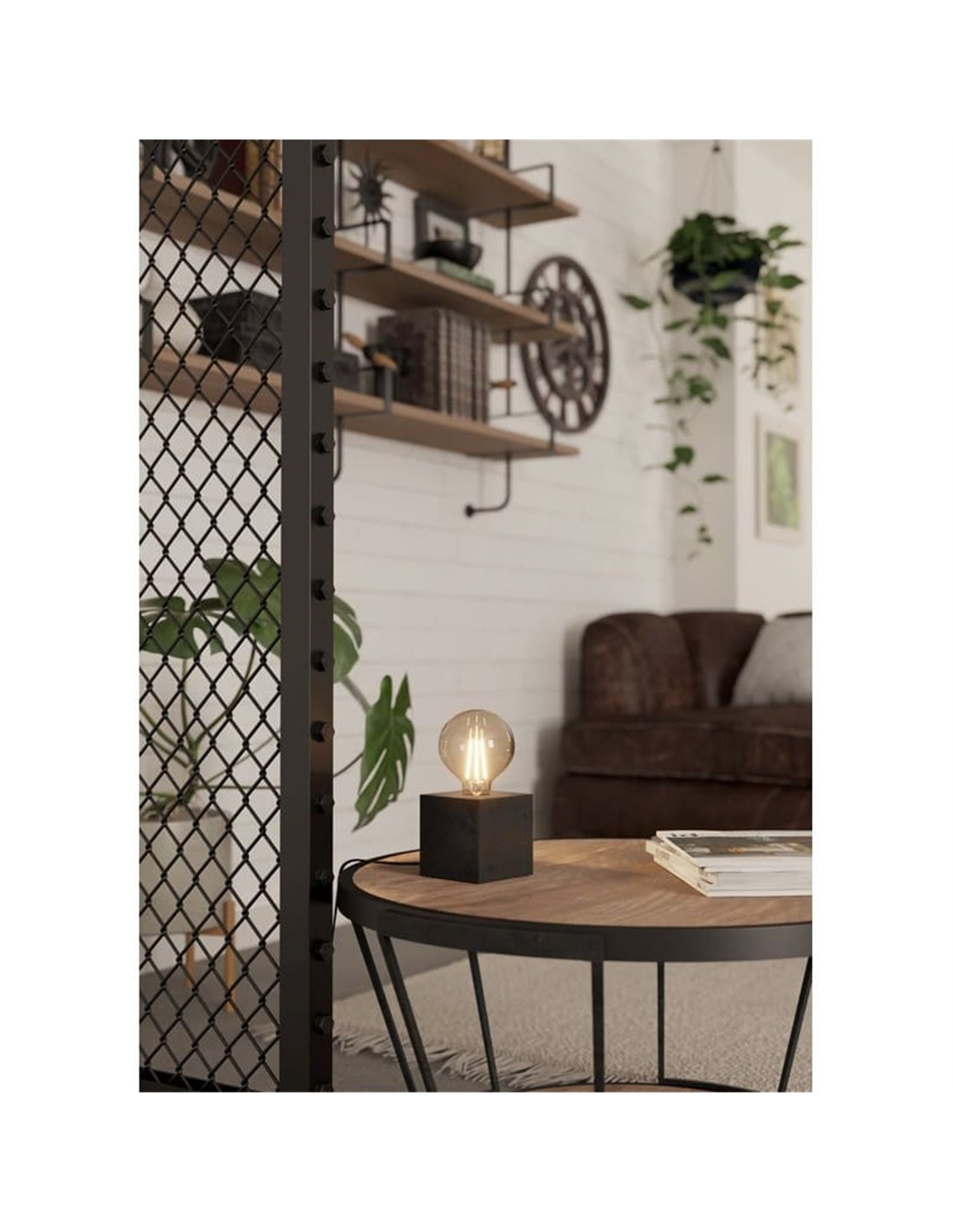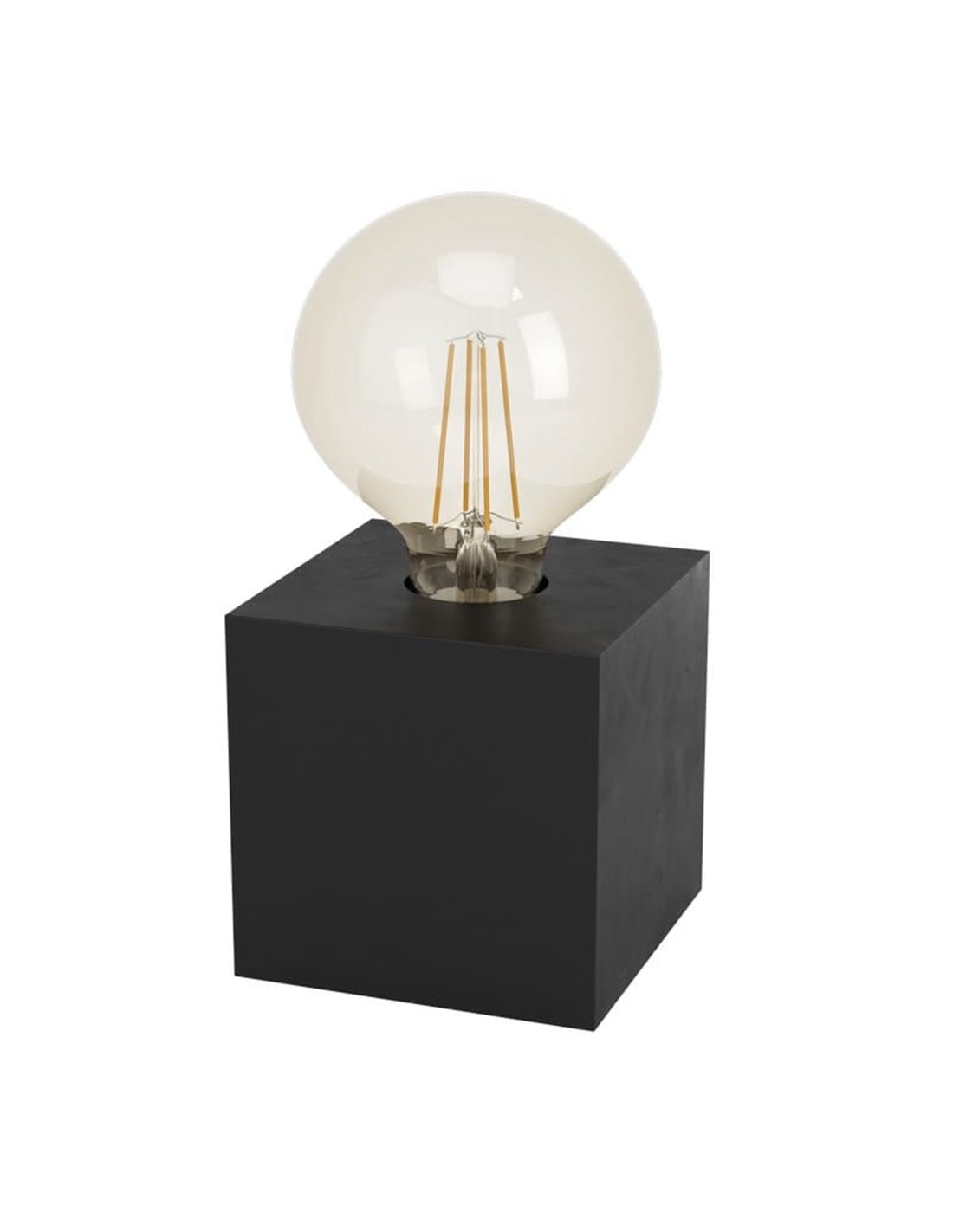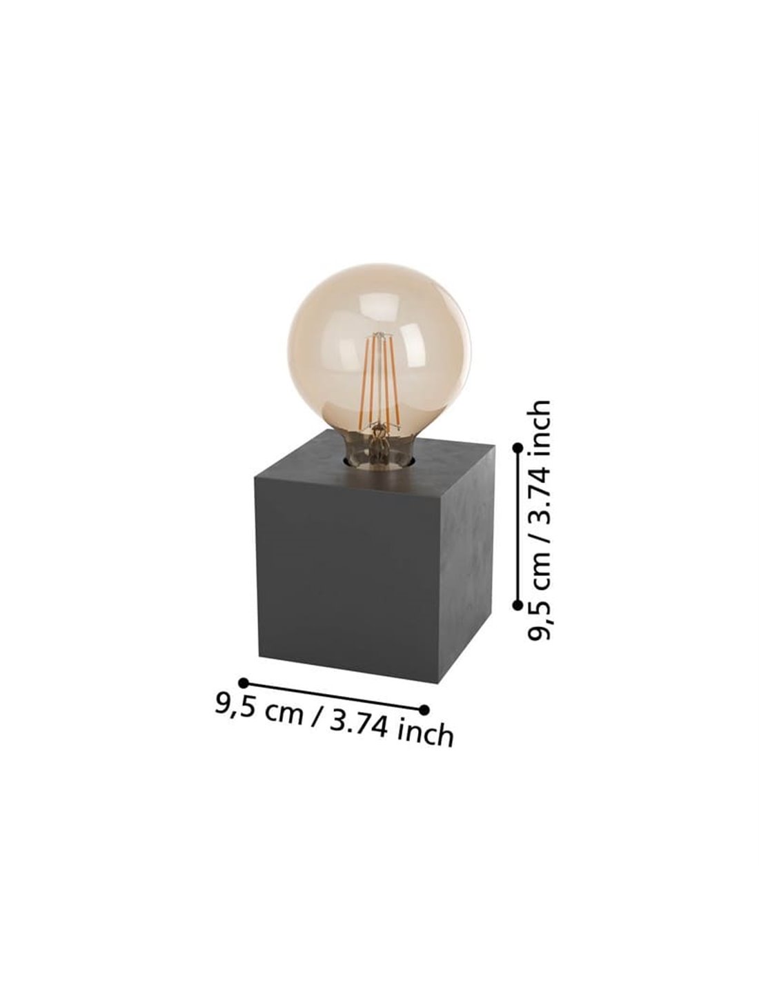 Die Tischlampe PRESTWICK 2 von Eglo ist aus schwarzem Holz mit würfelförmigem Design gefertigt. Abmessungen: ↕ 95 mm | ↔ 95 mm.