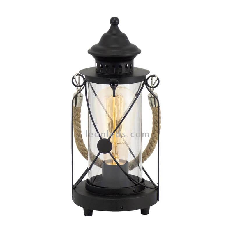 Tischlampe mit 1 Schirm in Laternenform aus Stahl und Glas aus der Bradford-Kollektion von Eglo Beleuchtung. Sie bietet einen Vintage- und industriellen Stil, ideal für jeden Raum, der Beleuchtung benötigt und einen originellen Touch braucht. Sie ist mit einem hängenden Seil ausgestattet, das ihr einen maritimen Charme verleiht. Benötigt die Installation von 1 Glühlampe mit E27-Sockel (nicht enthalten). Es wird empfohlen, eine LED-Glühlampe in Globusform zu verwenden, um ihren Vintage-Stil zu betonen, da sie hinter dem Glasschirm sichtbar bleibt. Preferierbar in einem warmen Ton wie 3.000K, der diesen modernen Effekt verstärkt. Die empfohlene Leistung beträgt je nach Größe des Raumes, den wir beleuchten möchten, 10 bis 17W.