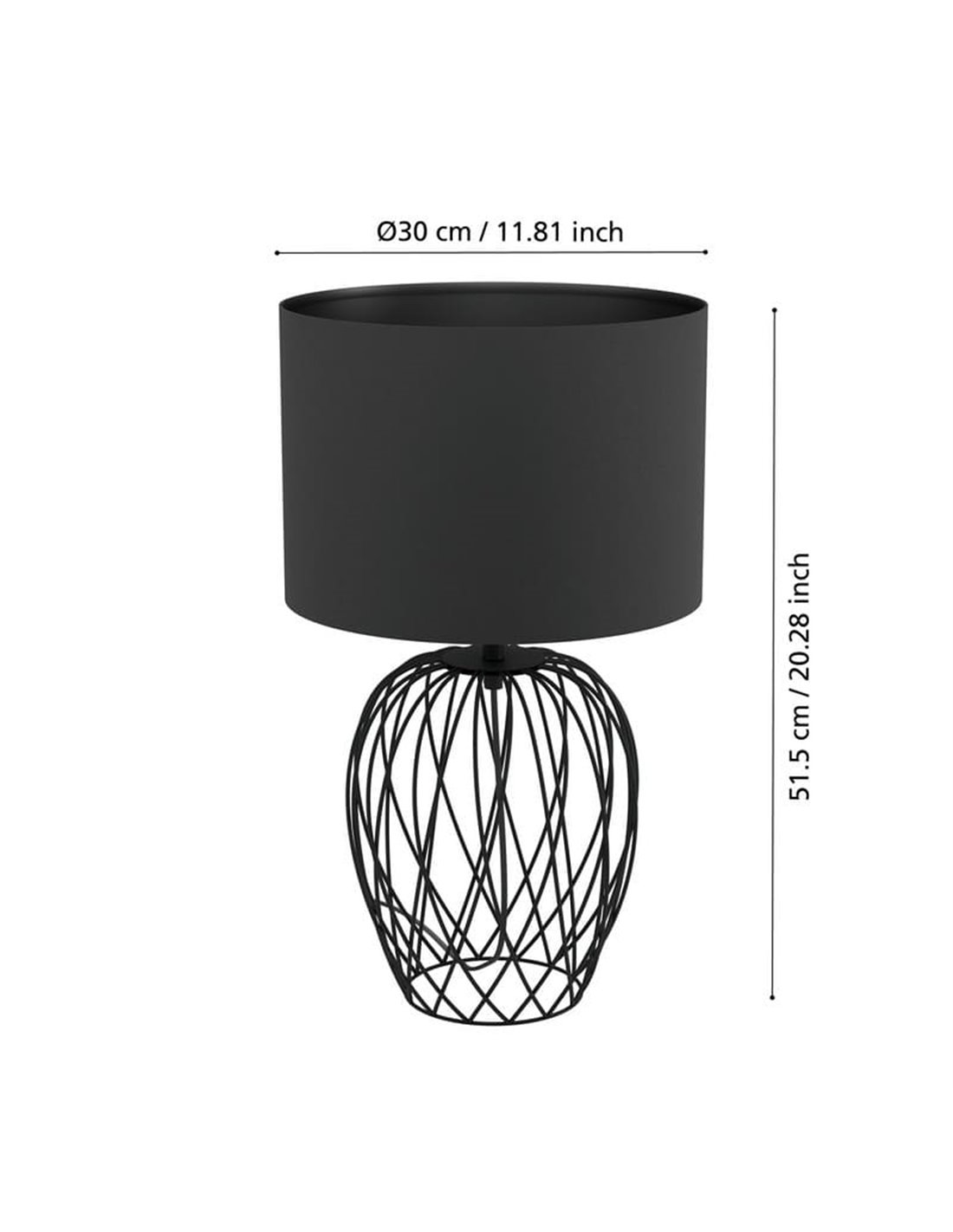 Tischleuchte NIMLET von Eglo, mit schwarzem geflochtenem Drahtsockel und schwarzem Stoffschirm. Kompatibel mit E27-Glühlampen (nicht enthalten). Ideal, um eine einladende Beleuchtung in jedem Raum zu schaffen.