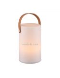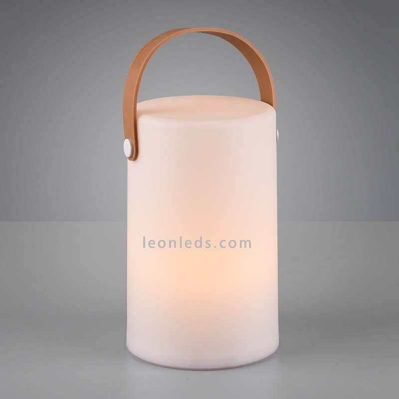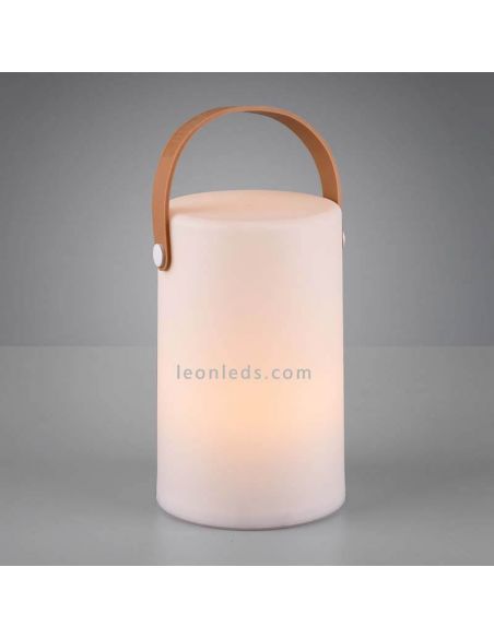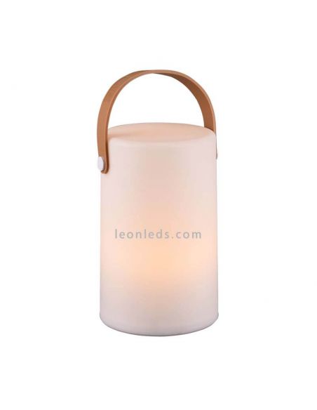 Tragbare LED-Lampe für den Außenbereich Aruba mit einem weißen Kunststoffschirm in zylindrischer Form und einem braunen Griff von Trio Lighting. Es ist eine tragbare LED-Lampe für den Außenbereich Aruba in Weiß, perfekt für jeden Raum, der sowohl Beleuchtung als auch Dekoration durch einen wiederaufladbaren Akku benötigt. Sie hat einen weißen Kunststoffschirm in zylindrischer oder konischer Form.
