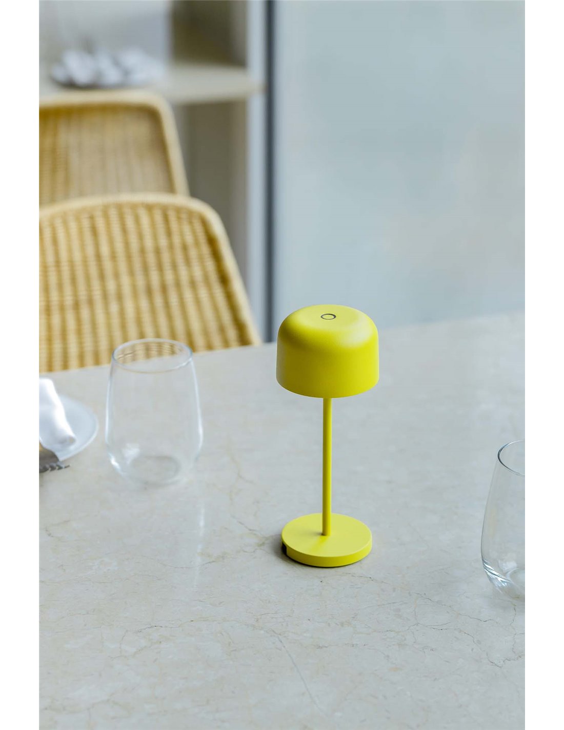 Die gelbe MAVIS 200 ist eine dekorative und funktionale Lampe für Außenbereiche. Sie bietet warmes LED-Licht von 2700K, einen wiederaufladbaren Akku mit USB-C-Eingang und eine Touchsteuerung. Ihr farbenfrohes Design ist perfekt, um Ihrer Terrasse oder Ihrem Garten einen energetischen Touch zu verleihen.