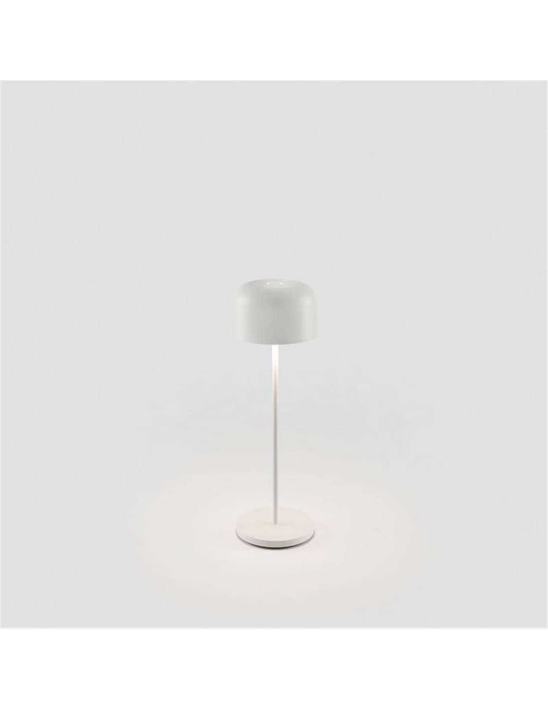 Die MAVIS 360 weiße Lampe mit warmem Licht 2700K und 3W Leistung. IP54, wiederaufladbar über USB-C und regulierbar durch Berührung. Auch in schwarz und gelb erhältlich.