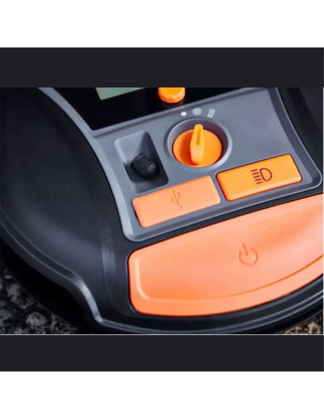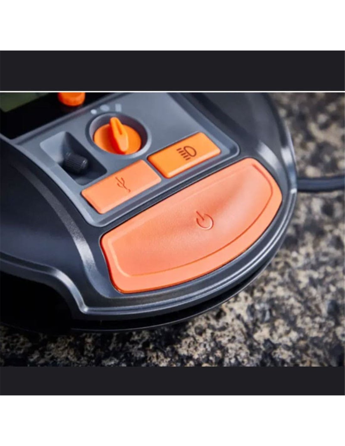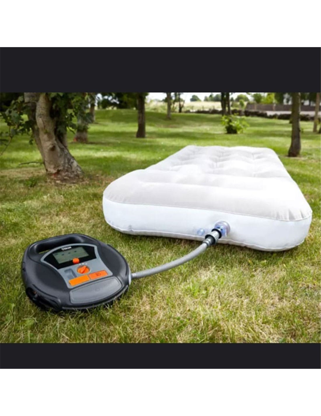 Er beinhaltet einen Schlauch und ein USB-Kabel (Ladung), um alle Reifen zu erreichen, sowie einen Entlüftungsknopf für feine Anpassungen.