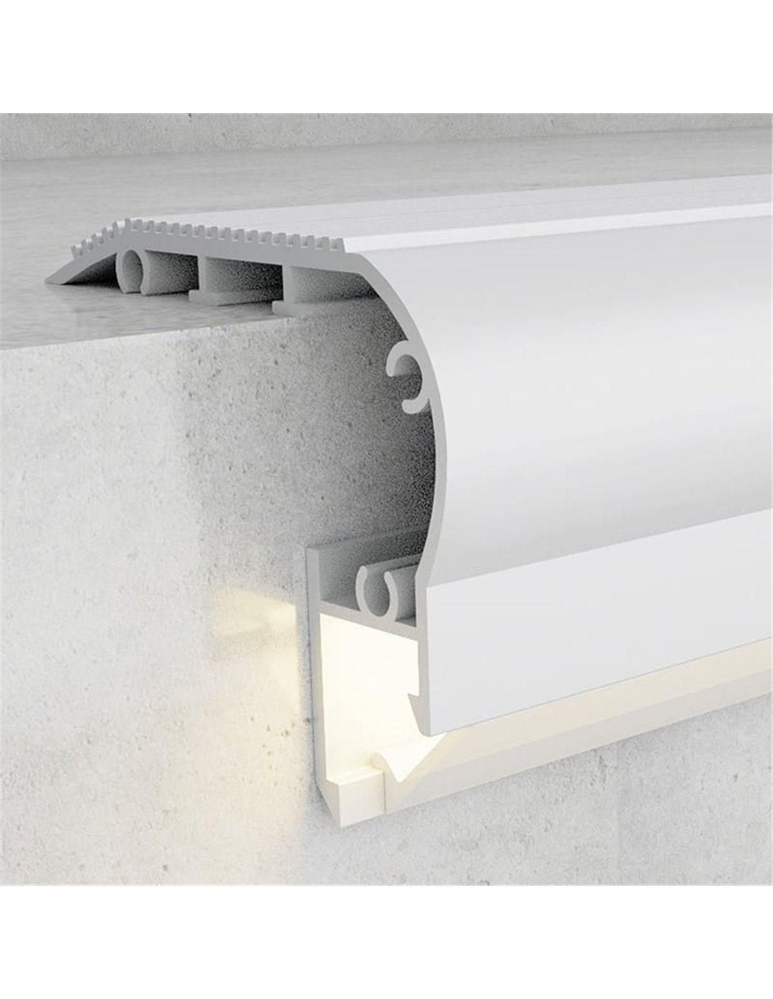 Das Aluminiumprofil KUF ist eine praktische Lösung, um LED-Streifen zu integrieren und eine ordentlichere und ästhetischere Installation in Innenräumen zu erreichen. Es enthält 2 Endkappen, 1 Diffusor.