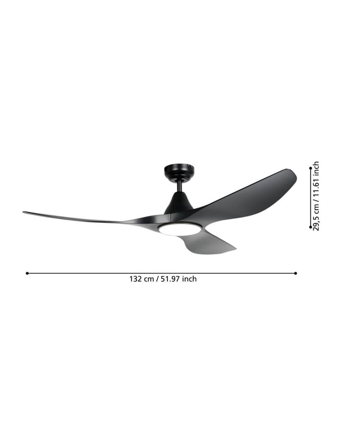 LED Deckenventilator PORTSEA von 19W, in Schwarz, mit 2300Lm und einstellbarem CCT (3000K-4000K-5000K). Ideal zum Beleuchten und Belüften von Innenräumen mit Stil und Effizienz.