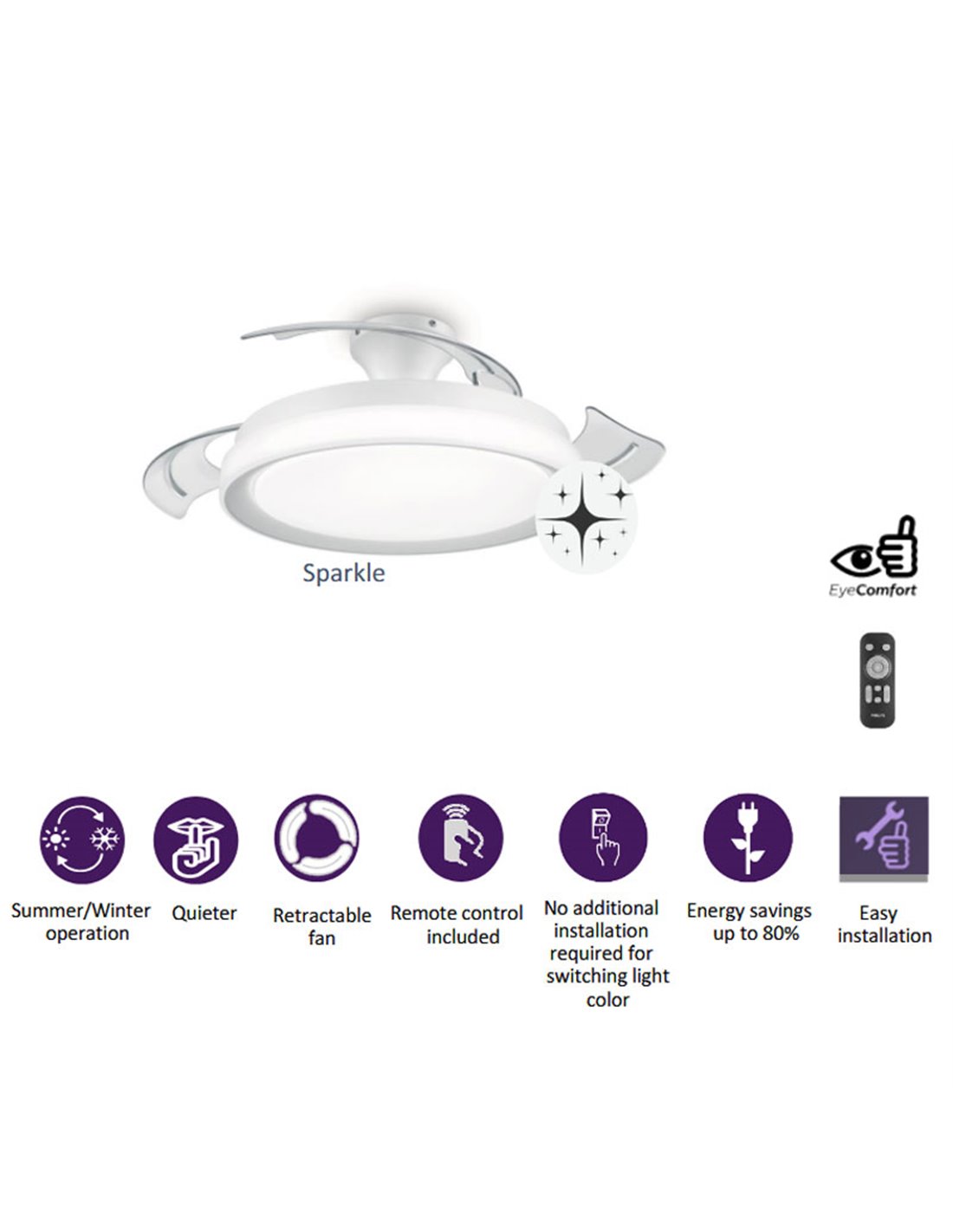Deckenventilator LED mit einziehbaren Blättern SUPERECO LONG, 45W 4400Lm CCT