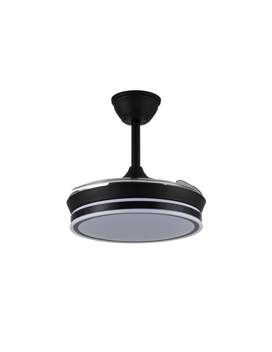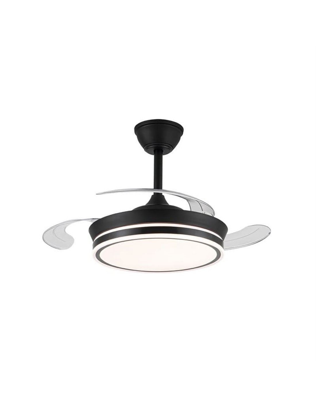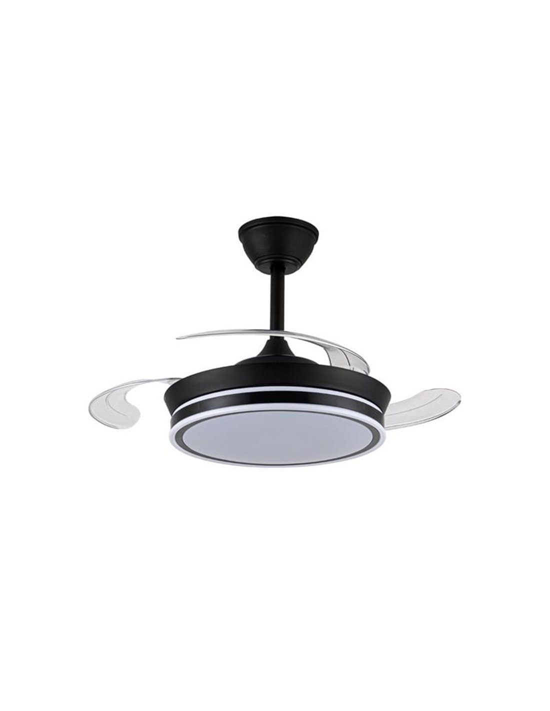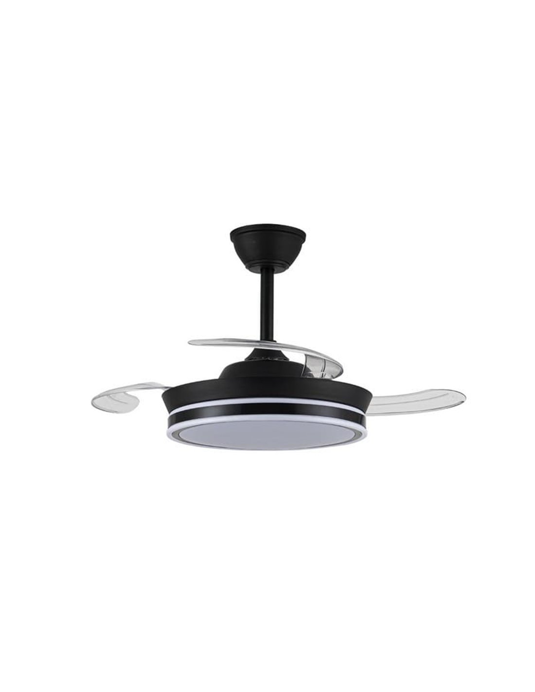 Deckenventilator LED SUPERECO MINI schwarz mit einziehbaren Blättern und leisem DC-Motor