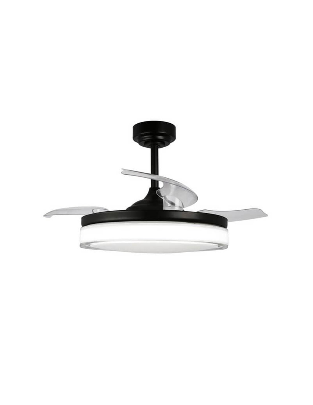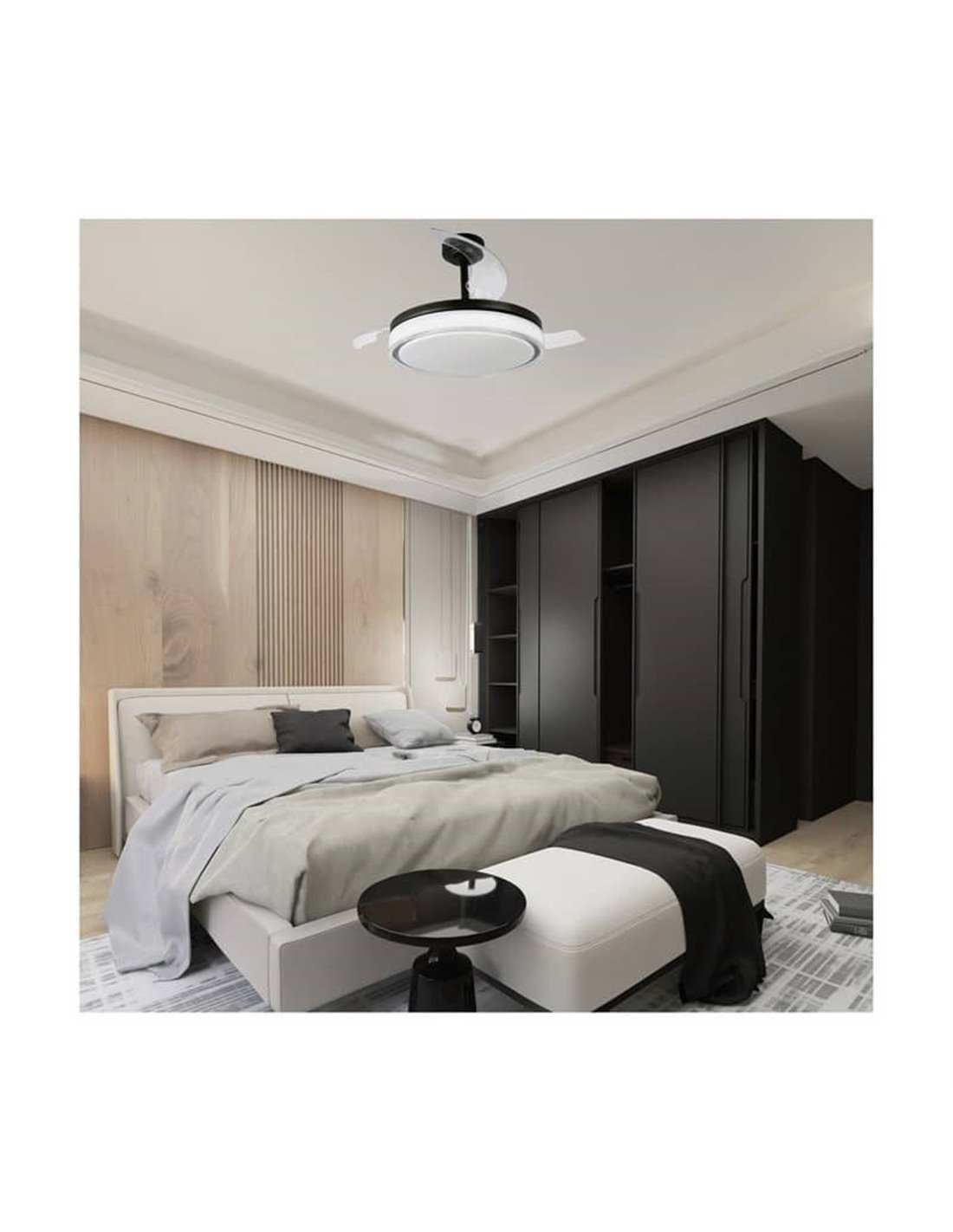 Der Ventilator LED mit faltbaren Blättern ANETO Schwarz bietet die perfekte Kombination aus Beleuchtung und Ventilation für dein Zuhause. Mit einer Leistung von 72W und einem Lichtstrom von 7920Lm bietet er strahlendes Licht und frische Luft in jedem Raum. Sein elegantes und modernes Design sowie seine regulierbare Farbtemperatur (CCT) machen ihn zu einer vielseitigen und funktionalen Wahl für dein Zuhause.