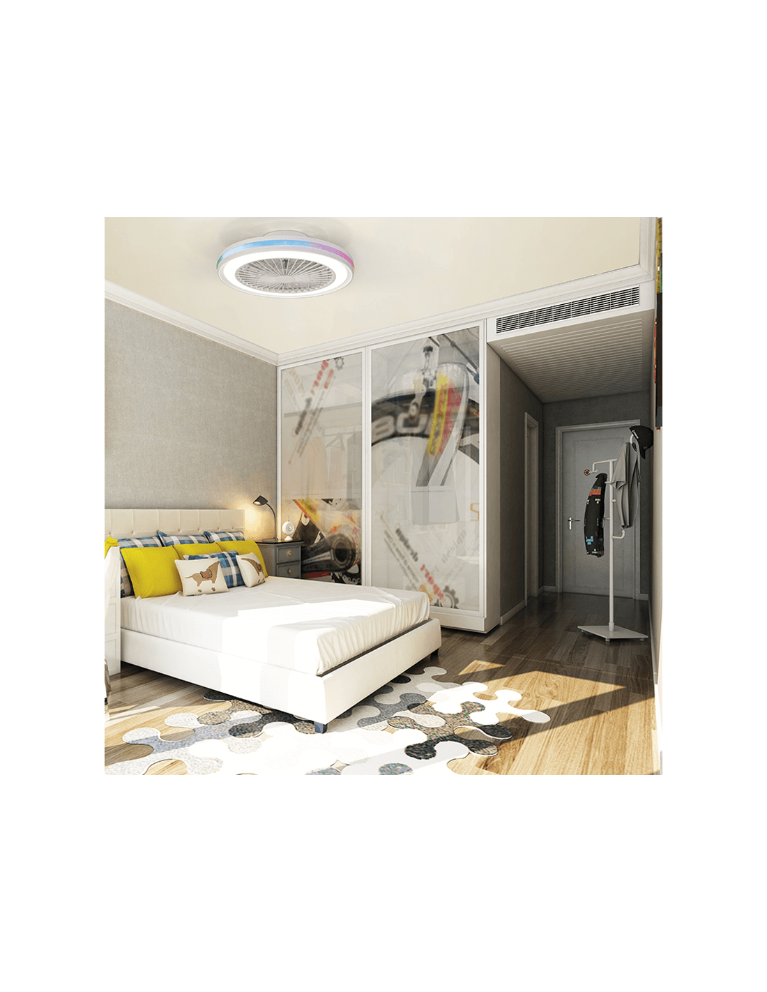 LED Deckenventilator mit buntem Licht Gamer Weiß Klein 46.6 cm