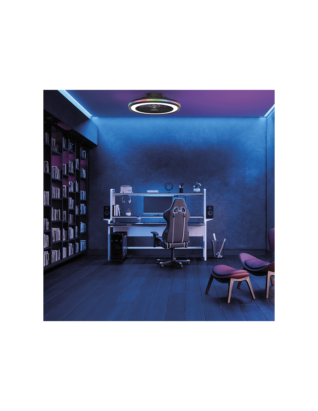 LED Deckenventilator mit buntem Licht Gamer Weiß Klein 46.6 cm