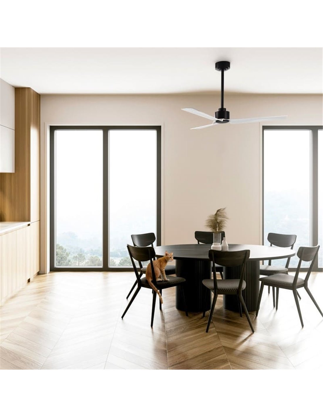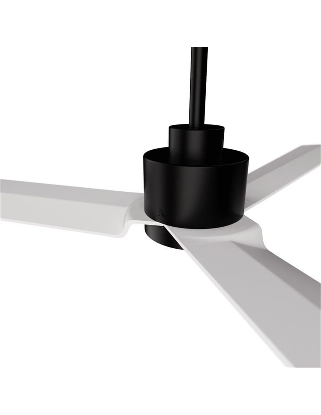 Der Deckenventilator Anne ohne Licht zeichnet sich durch seine matte schwarze Ausführung in Kombination mit weißen Blättern aus, was einen attraktiven Kontrast schafft, der zur modernen oder minimalistischen Dekoration passt. Mit einem Durchmesser von Ø127 cm und DC-Motor von bis zu 22 W bietet er eine leistungsstarke und leise Belüftung in großen Räumen, ohne Licht zu integrieren, was eine saubere Ästhetik ermöglicht.