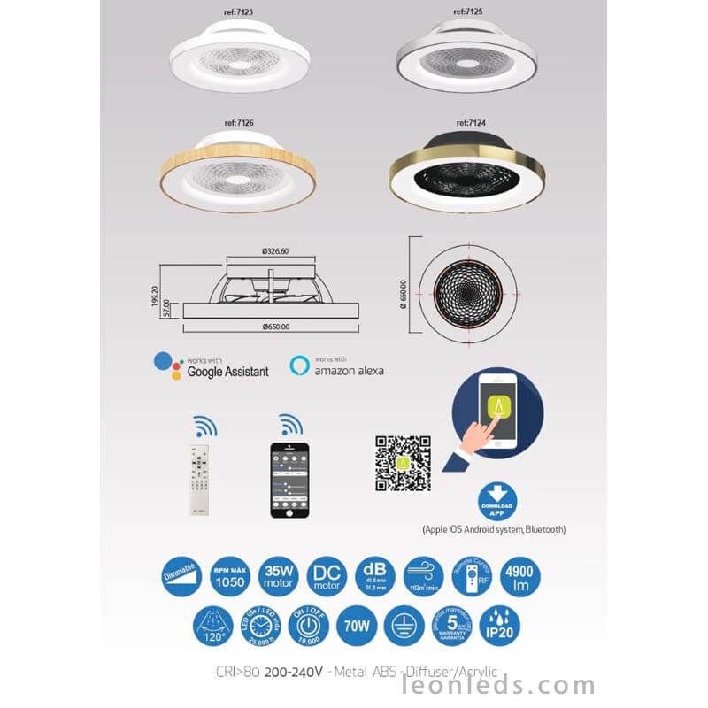 Bediene den Ventilator Tibet ganz einfach mit einer Fernbedienung (inklusive), Sprachbefehlen über Alexa und Google Home oder über die "Tibet" App, die für Android und iOS verfügbar ist. Das 70W LED-Licht liefert eine starke Helligkeit von 4.900 Lumen, was mehr als 300W einer herkömmlichen Glühbirne entspricht, und ist voll dimmbar in Helligkeit und Farbtemperatur, sodass es sich perfekt an jede Umgebung anpasst.