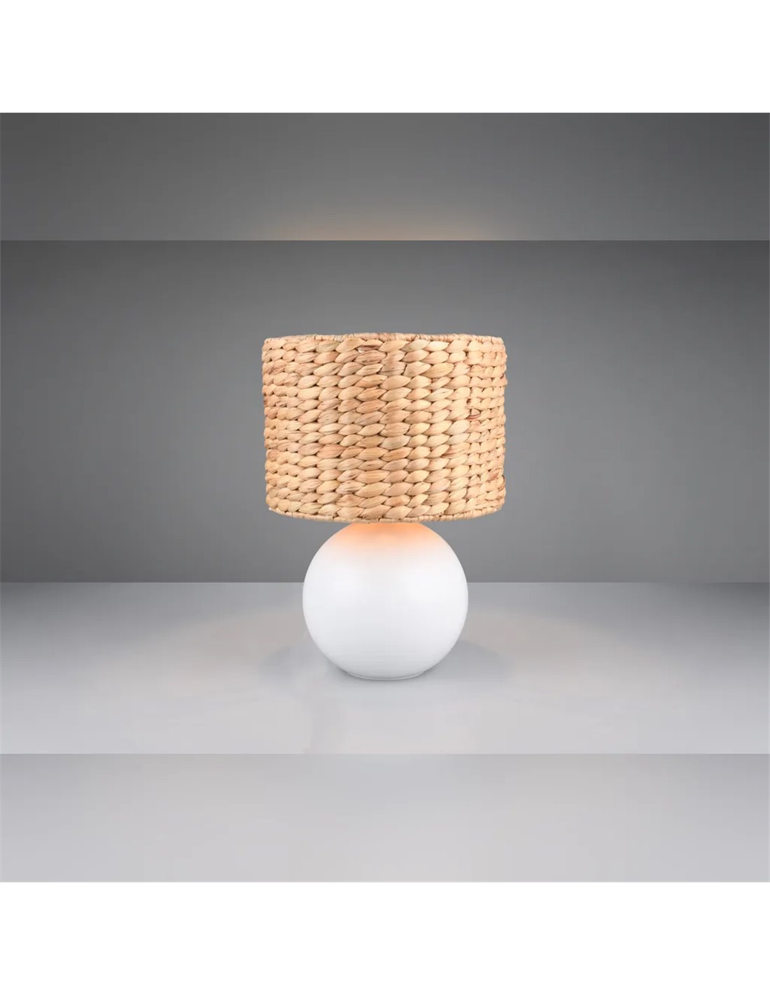 Die Tischleuchte VINA von TRIO Lighting besticht durch ihr natürliches und einladendes Design dank des Lampenschirms aus gewebten Fasern . Sie eignet sich ideal für Schlafzimmer, Wohnzimmer oder Entspannungsbereiche und schafft eine warme und dekorative Atmosphäre.