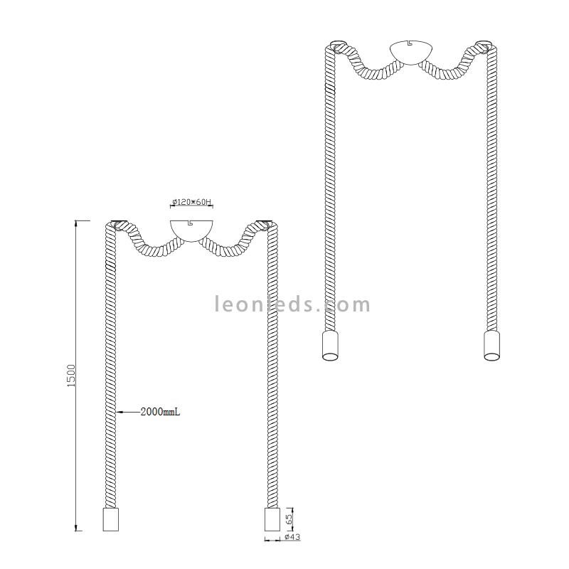 Diese Deckenlampe mit 2 Seilen ist perfekt zur Installation an der Decke, über dem amerikanischen Küchentisch, über dem Tisch im Wohnzimmer oder in der Weinstube oder an der Theke einer Bar oder eines Restaurants. Die Serie Rope bietet eine Deckenlampe mit einem Seil, die Sie mit dieser in einem Raum kombinieren können, um eine einzigartige Atmosphäre und ein einzigartiges Design zu schaffen.
