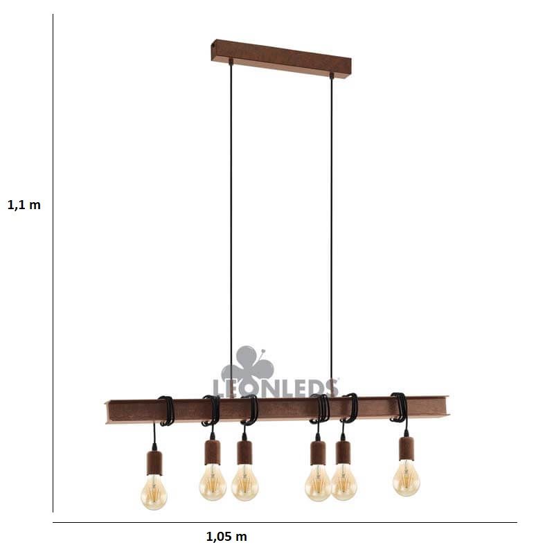 Es ist eine große Vintage-Pendelleuchte, die ideal ist, um große Wohnzimmer und Esszimmer zu beleuchten, die im Vintage-Stil dekoriert sind und rustikale und industrielle Farben wie Braun, Schwarz, Grau und Muster wie Ziegelstein aufweisen. Wir empfehlen ihre Installation sowohl in gewerblichen als auch in privaten Räumen. Darüber hinaus ist sie kombinierbar mit anderen Lampen der Townshend 4 Kollektion, die aus Deckenleuchten und Vintage-Applikationen besteht.