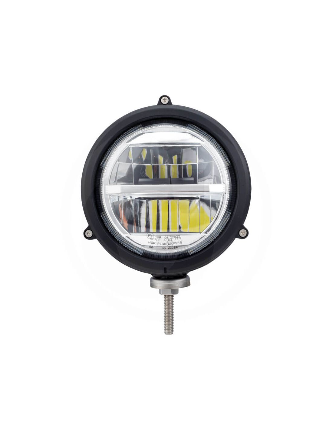 Die im Glas eingravierte ECE-Homologation stellt sicher, dass es den europäischen Vorschriften entspricht, während sein Gehäuse aus dichtem Aluminium und der Schutz IP6K9K/IP67 ihn gegen Wasser, Staub und die anspruchsvollsten Arbeitsbedingungen resistent macht.