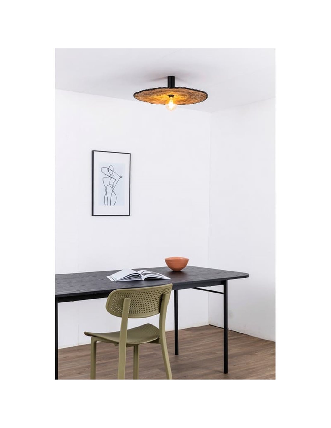 Aplique/Plafón mit langer schwarzer Basis aus Rattan COSTAS, groß, E27 ø600*140mm - Faro Barcelona
