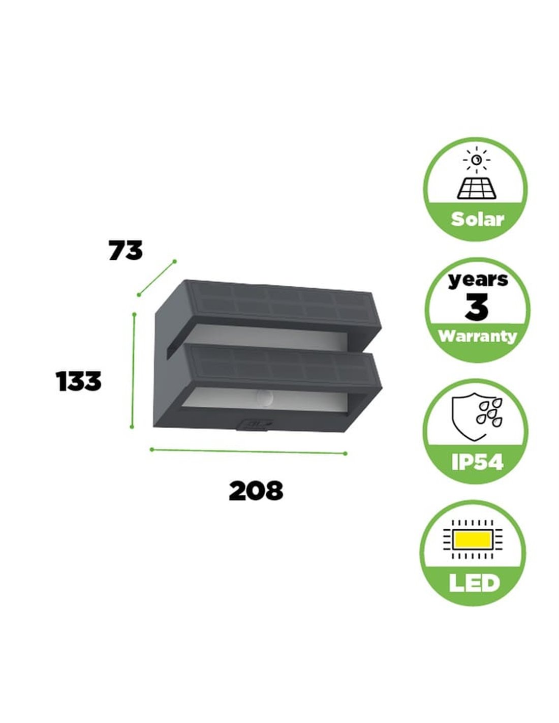 - Frontbeleuchtung: Spendet Licht frontal über das integrierte Solarpanel, schafft ansprechende Lichteffekte und verbessert die Ästhetik Ihres Hauses.
