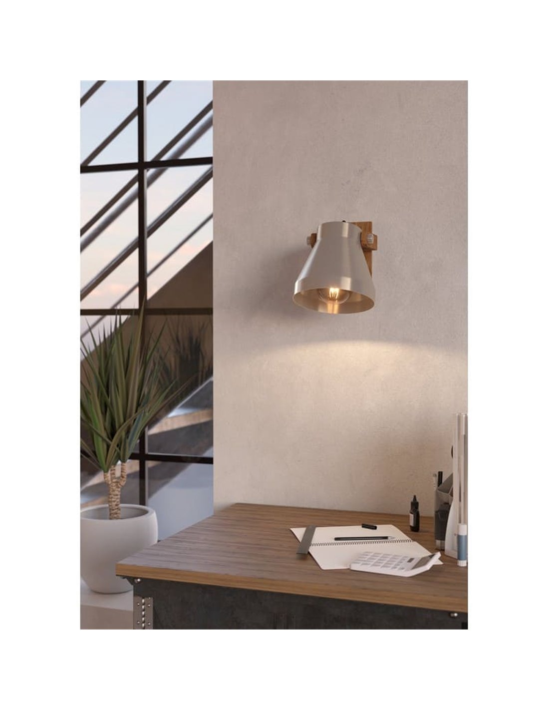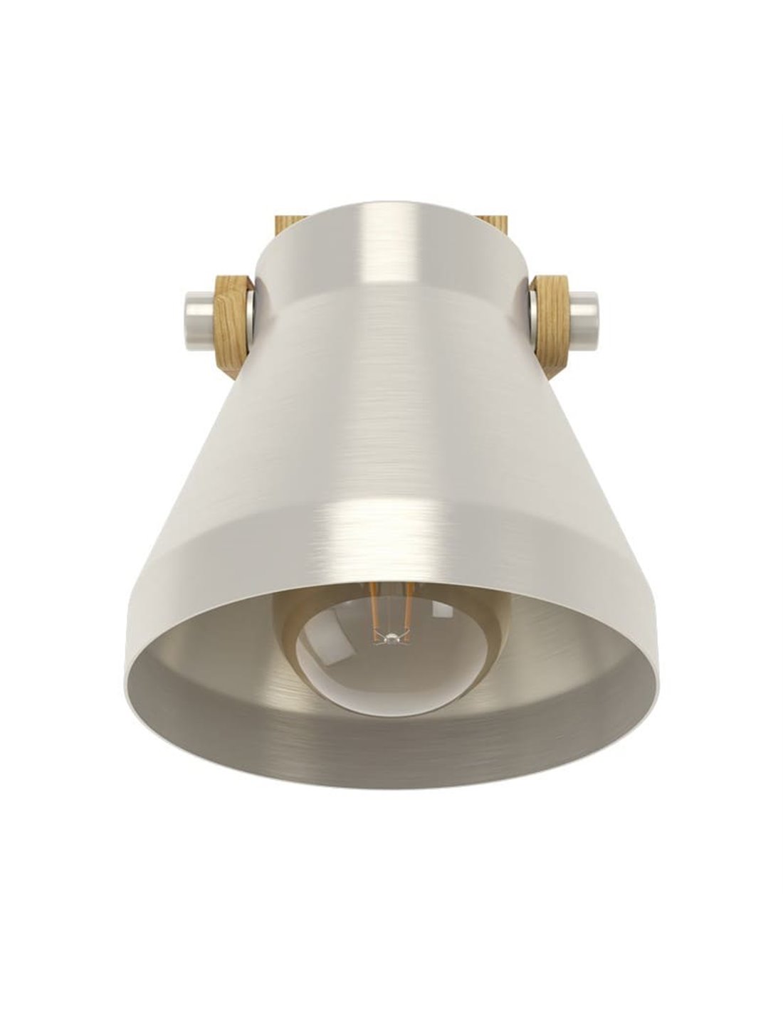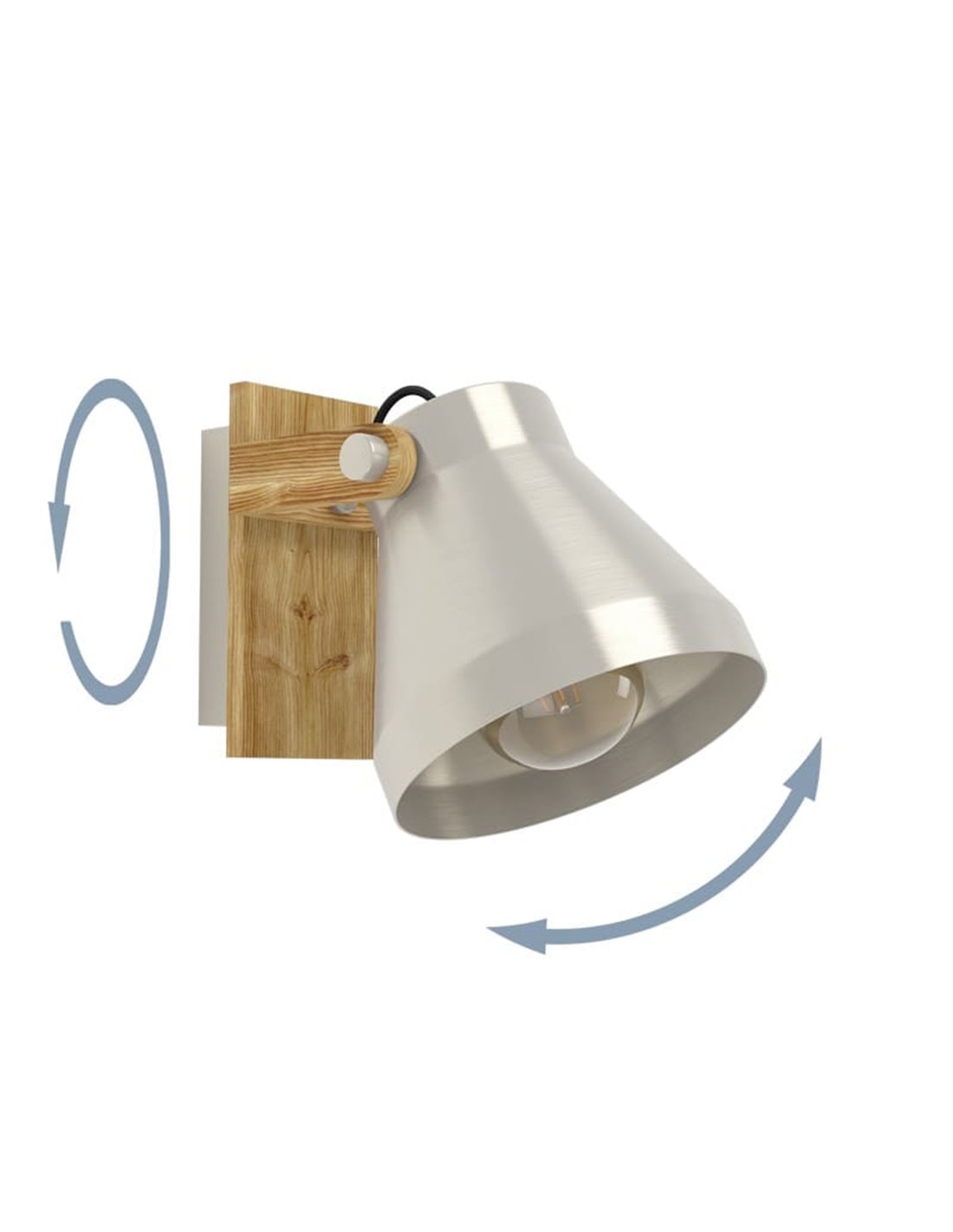 Die Wand- und Deckenlampe CAWTON von Eglo kombiniert eine rustikale Holzfuß mit einem schwenkbaren Schirm aus mattiertem Stahl in cremefarben. Perfekt für moderne Innenräume, ermöglicht diese Lampe die Ausrichtung der Beleuchtung für einzigartige Lichtakzente in jedem Raum.
