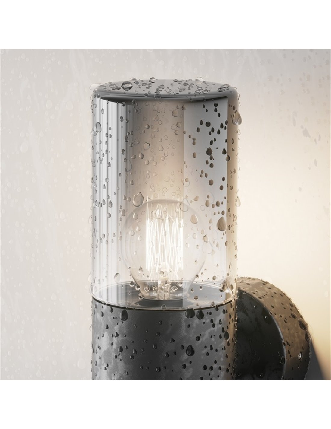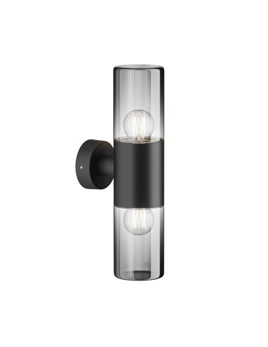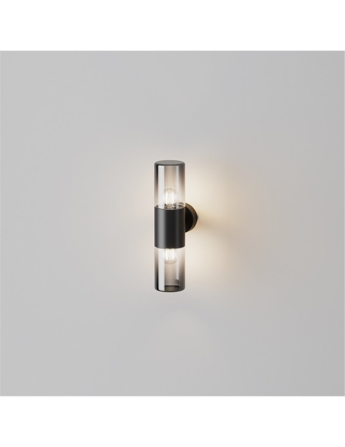 Das Wandapplique AMAS 2 Lichter bietet eine effiziente und ansprechende Außenbeleuchtung. Mit zwei rauchfarbenen Schirmchen und einer anthrazitfarbenen Aluminiumoberfläche ist dieses Applique perfekt, um Fassaden, Eingänge oder Dachterrassen zu beleuchten und verleiht deinen Außenbereichen eine elegante und moderne Note.