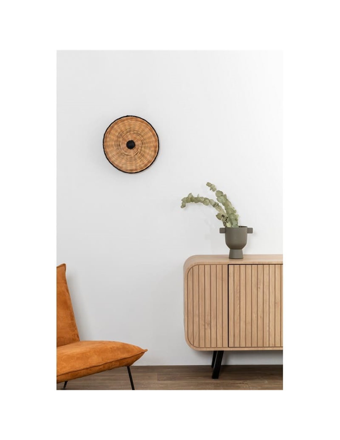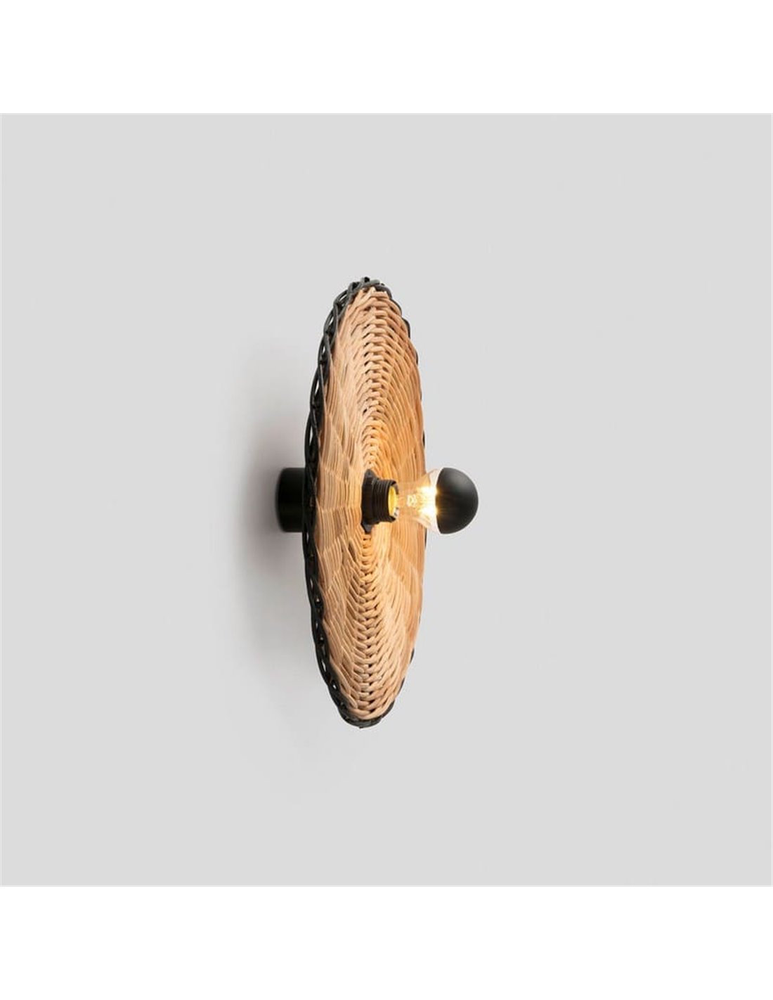 Wandapplique COSTAS klein Ø40cm - Design in Schwarz und natürlichem Rattan