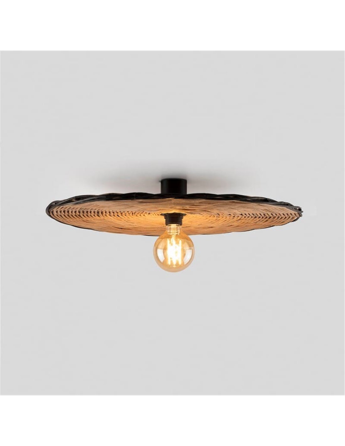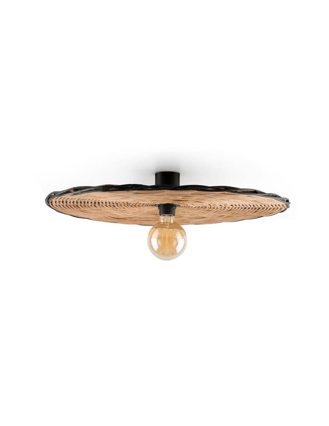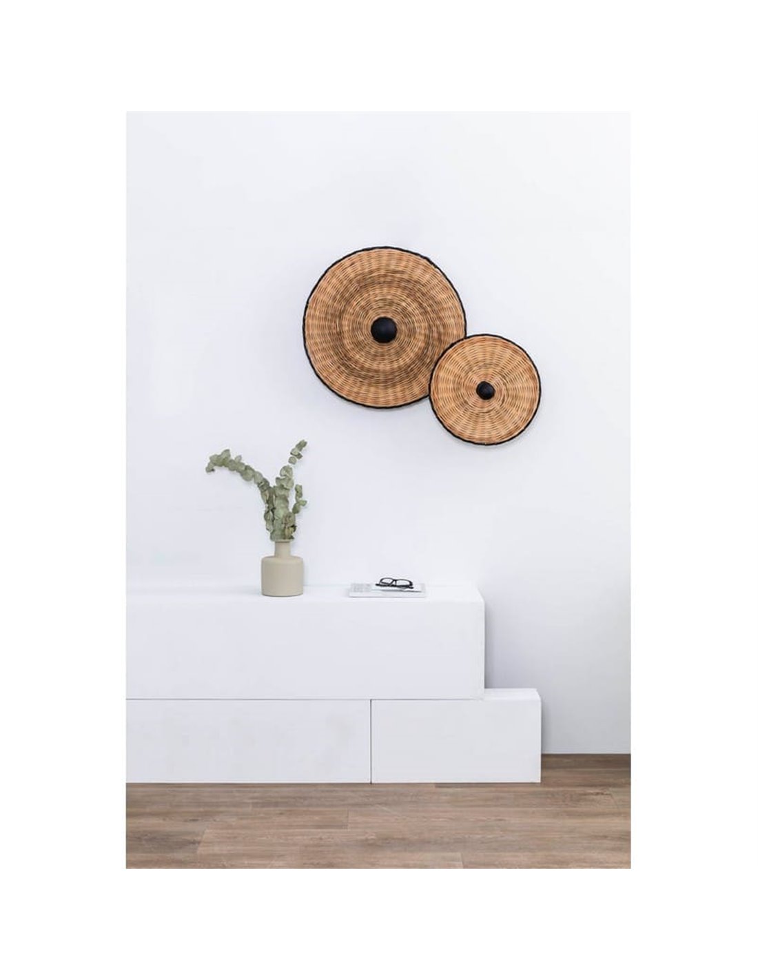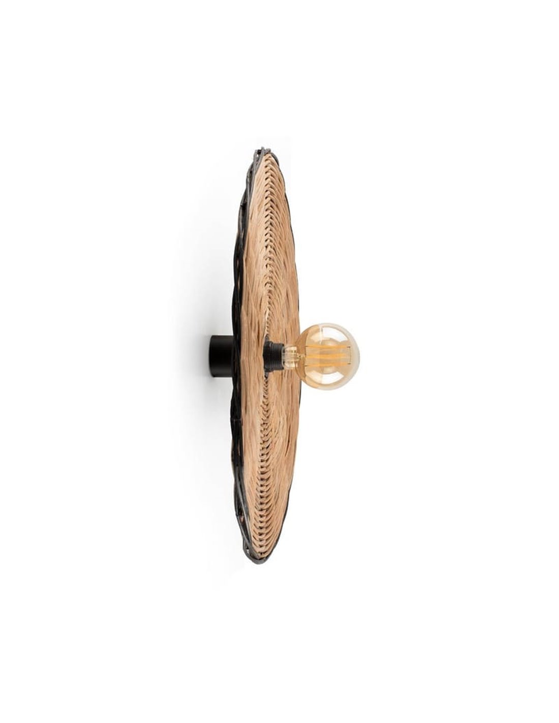 Wandapplique COSTAS groß Ø60cm - Design in Schwarz und natürlichem Rattan