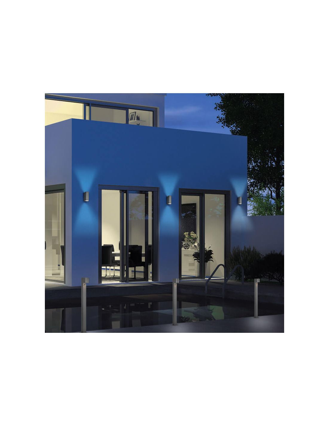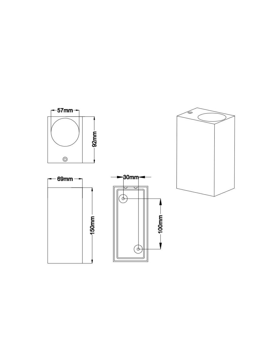Das Roya-Applique funktioniert mit zwei GU10-Birnen, die nicht im Lieferumfang enthalten sind und eine maximale Leistung von 35W bieten. Dank des IP44-Schutzes vor Spritzwasser ist es perfekt, um Innen- oder Außenbereiche wie Balkone, Eingangsbereiche, Terrassen usw. zu dekorieren.