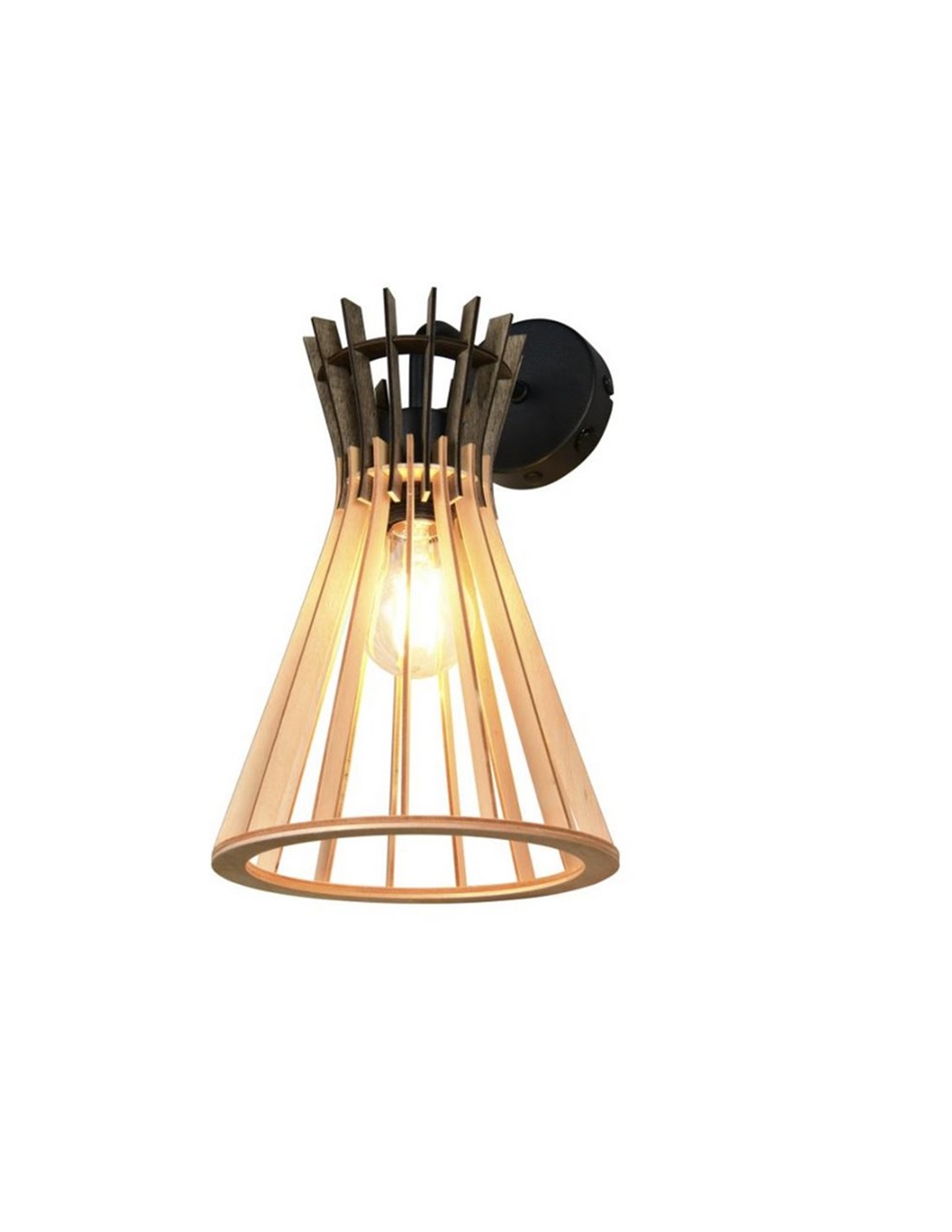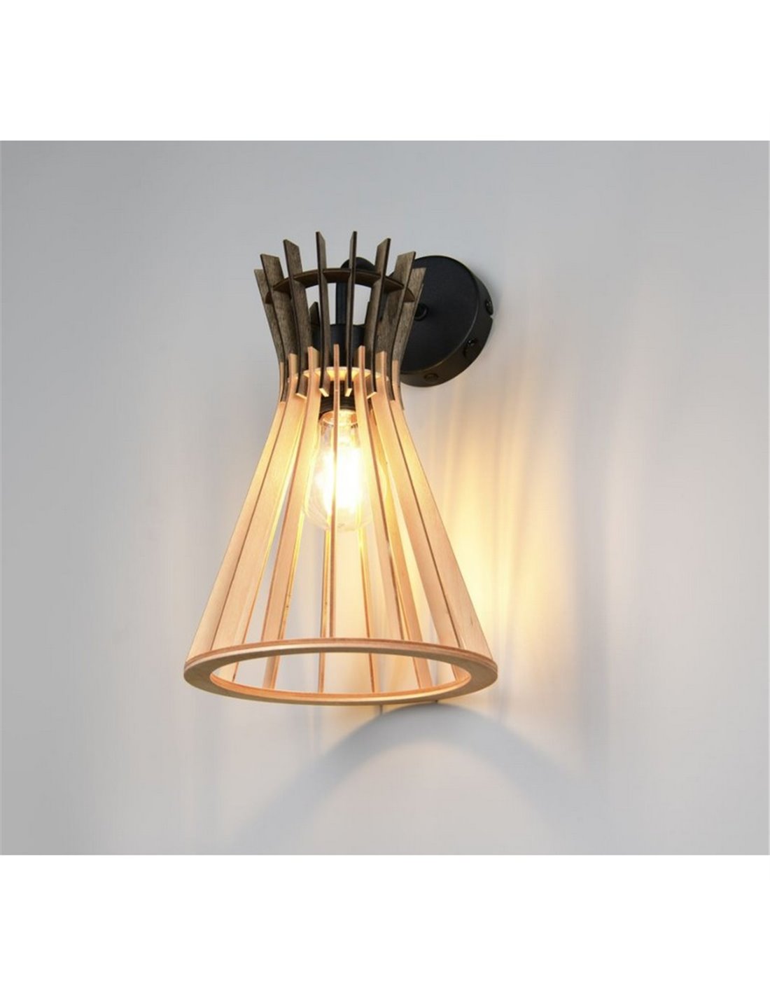 Wandaufbau ALICE mit Holzfinish, entworfen, um stilvoll zu beleuchten und zu dekorieren. Kompatibel mit E27 Glühbirne (nicht enthalten) bis zu 10W. Ideal für Innenräume, mit Zertifizierung IP20.