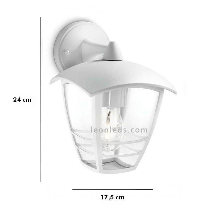 Die MyGarden Creek Wandleuchte E27 aus Aluminium in Weiß von Philips ist perfekt, um die Außenwände Ihres Hauses rustikal zu gestalten. Sie wurde mit einem hängenden Leuchtenkörper in Form einer Laterne aus hochwertigem Aluminium mit weißem Finish und einem transparenten Kunststoffschirm entworfen, der die Fassung der Glühbirne aufnimmt und durch den Schirm hindurch sichtbar ist.