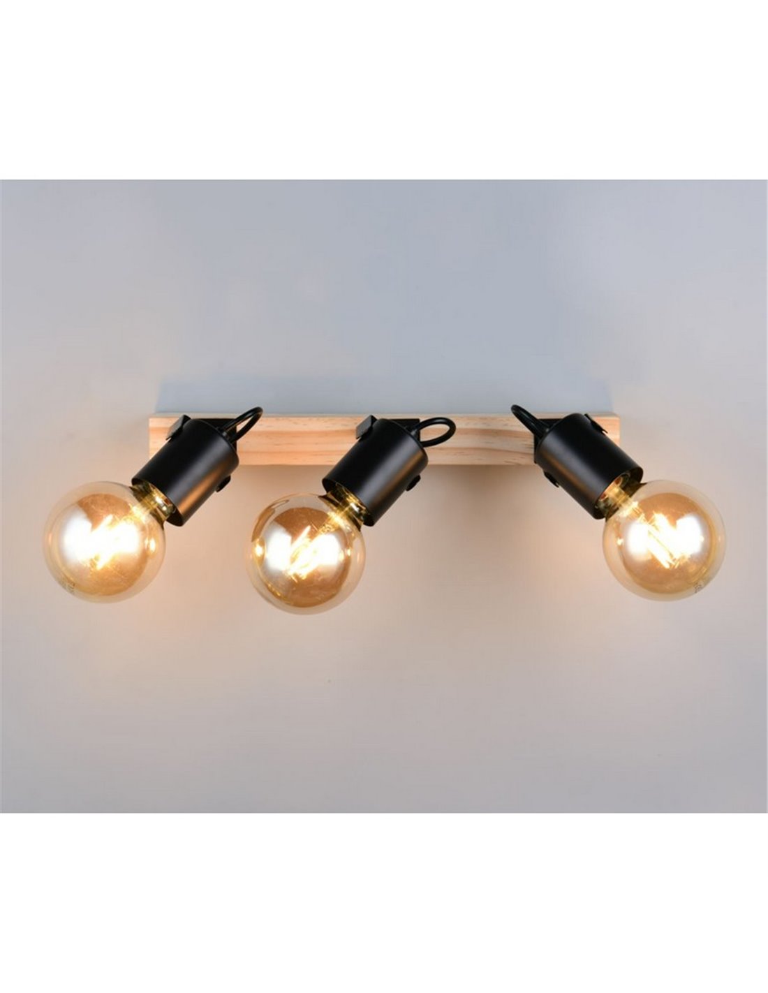 Die Wandleuchte LYNAR mit 3 Lichtquellen in schwarzer Oberfläche mit Holzdetails bietet eine elegante und moderne Kombination. Sie ist kompatibel mit 3 E27-Glühbirnen max. 10W (nicht enthalten), geeignet für Wand oder Decke und hat die Schutzart IP20.