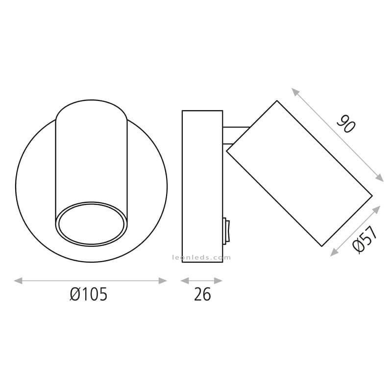 Die Wandleuchte der Serie Gina von ACB Iluminación ist aus Aluminium gefertigt, einem sehr robusten Material, das gegen Stöße beständig ist. Diese Wandleuchte hat die Form eines Zylinders, hat eine Höhe von 9 cm und eine Breite von 10,5 cm. Sie verfügt über einen Schalter an der Basis der Wandleuchte, wodurch wir Kabel vermeiden und mehr Praktikabilität erhalten, indem wir den Einschaltknopf immer griffbereit haben.