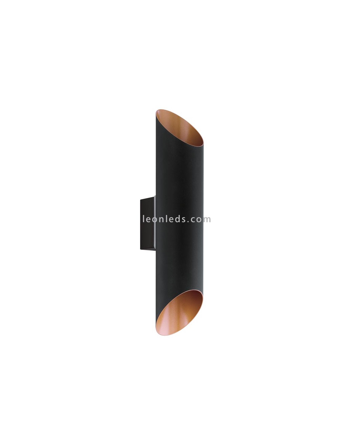 LED-Wandleuchte für den Außenbereich aus galvanisiertem Stahl in Schwarz und Kupfer mit einer Leistung von 2 x 3,7W, einer Gesamtlichtintensität von 640Lm und einem warmen Lichtton von 3000K.