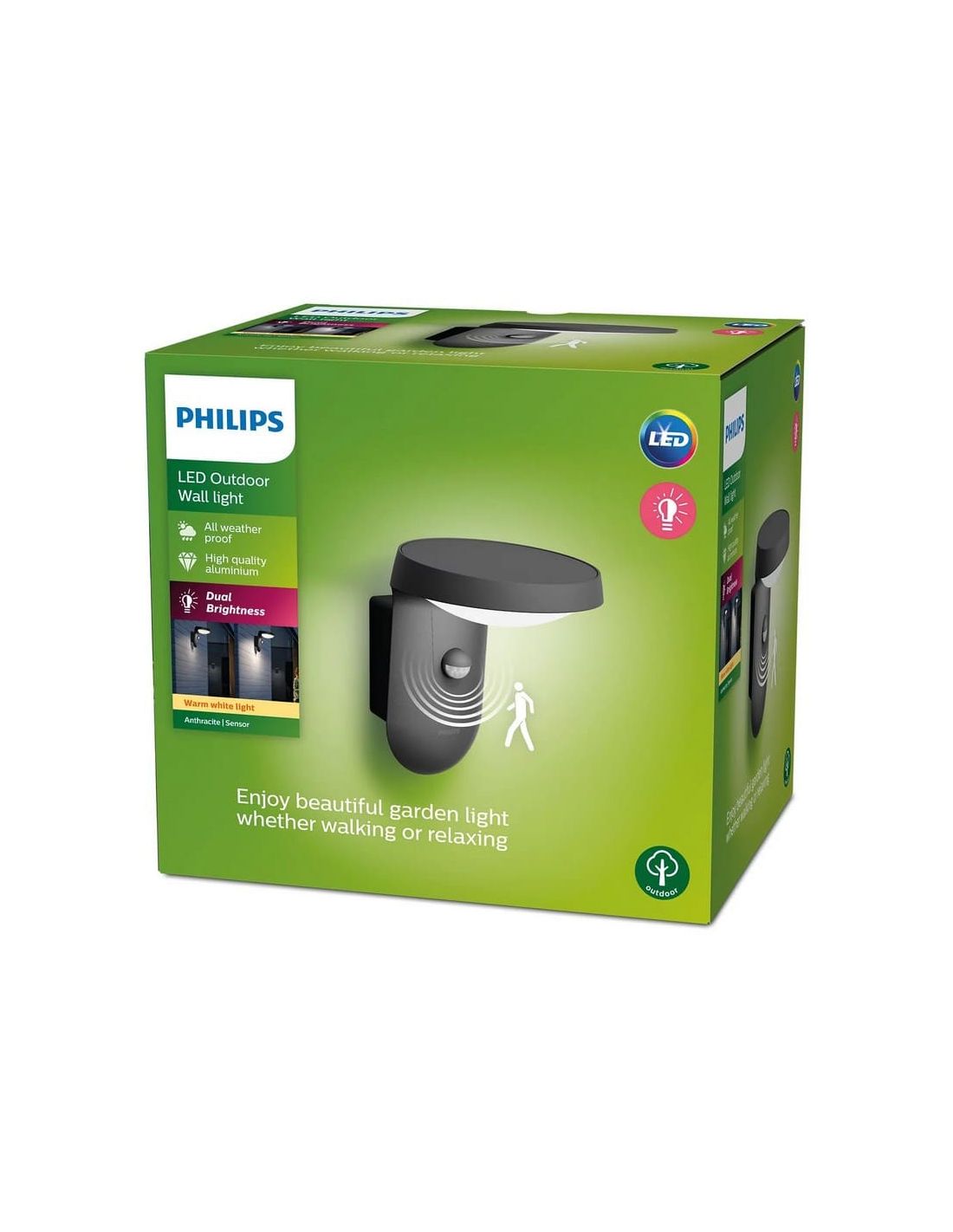 Hergestellt aus hochwertigem Aluminium und hervorragenden synthetischen Materialien, ist diese Leuchte für die härtesten Witterungsbedingungen konzipiert, ohne dabei ihre Leistung zu beeinträchtigen. Darüber hinaus garantiert die hochwertige LED-Technologie, die von Philips entwickelt wurde, eine optimale Lichtemission und eine Energieeinsparung von bis zu 80 % im Vergleich zu herkömmlichen Halogenlampen.