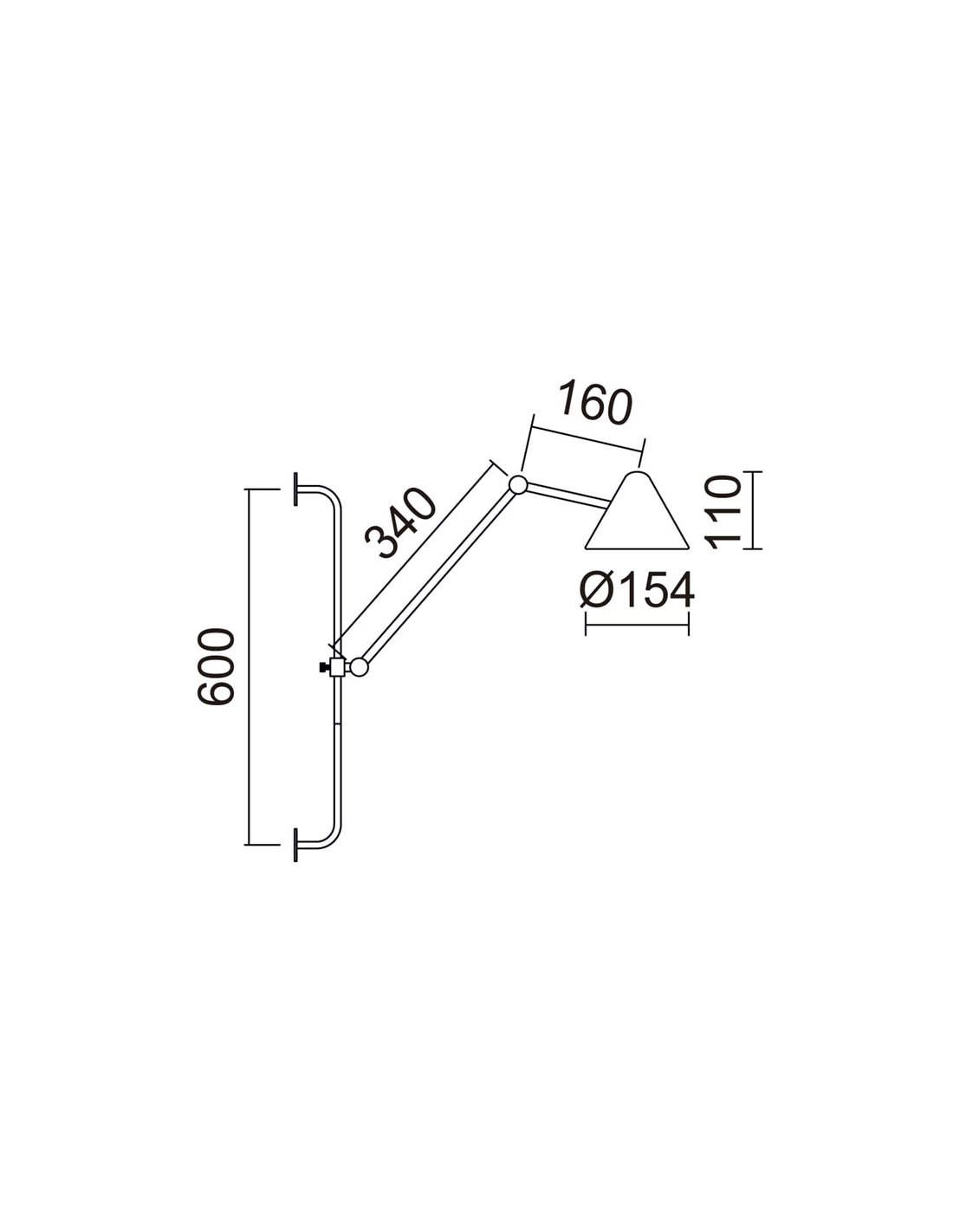 Wandleuchte ARM M, inklusive Glühbirne, max. 5W, IP20, 220-240V, Energieeffizienzklasse D, 720lm, 1,35kg, Abmessungen: 574mm Tiefe x 154mm Breite x 600mm Höhe.