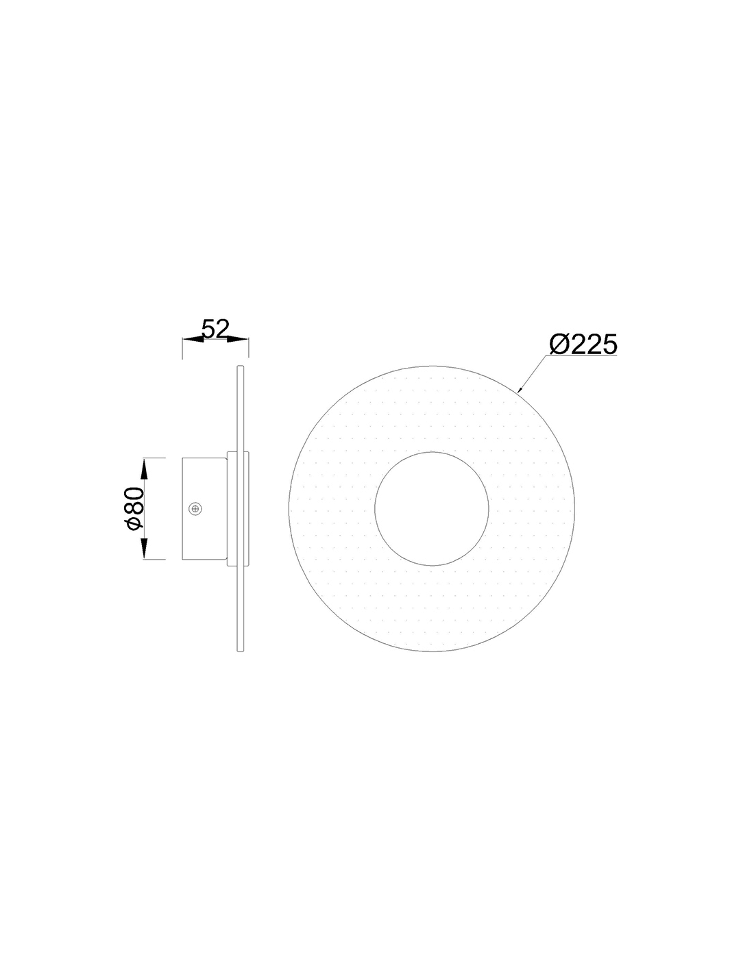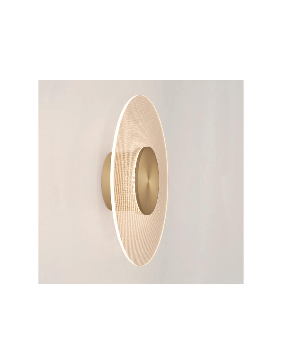 Die Wandleuchte Venus hat eine Höhe von 5,2 cm und einen Durchmesser von 22,5 cm für die kleinere Version; und eine Höhe von 5,7 cm und einen Durchmesser von 50 cm für die größere.