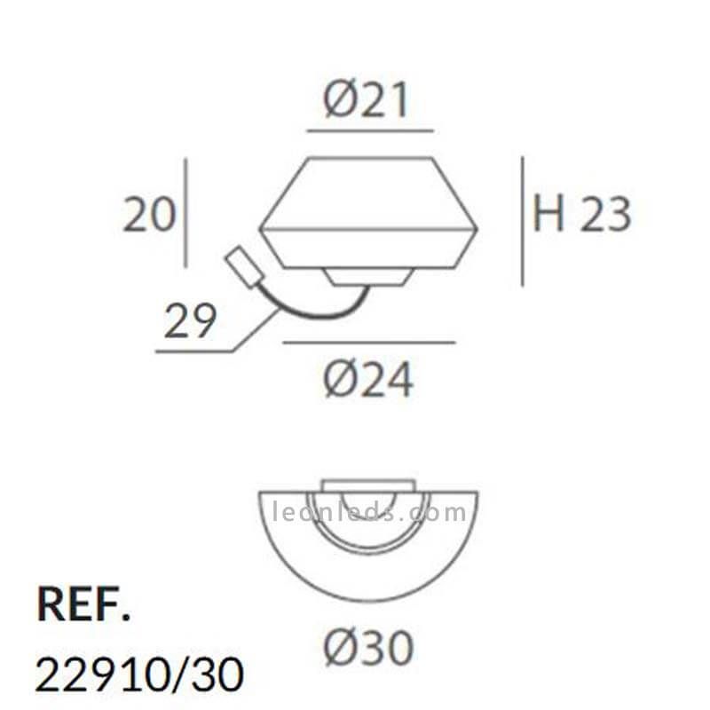 Sie ist perfekt, um als dekorative Wandleuchte in jedem Zuhause, Hotel oder Hostel installiert zu werden. Ihre Installation muss in Innenräumen erfolgen. Sie hat eine Höhe von 23 cm und einen Durchmesser von 30 cm. Es handelt sich um einen minimalistischen und modernen Wandleuchte, die in jedem Innenraum installiert werden kann, da sie über einen Schutz gegen Wasser und Staub nach IP20 verfügt.