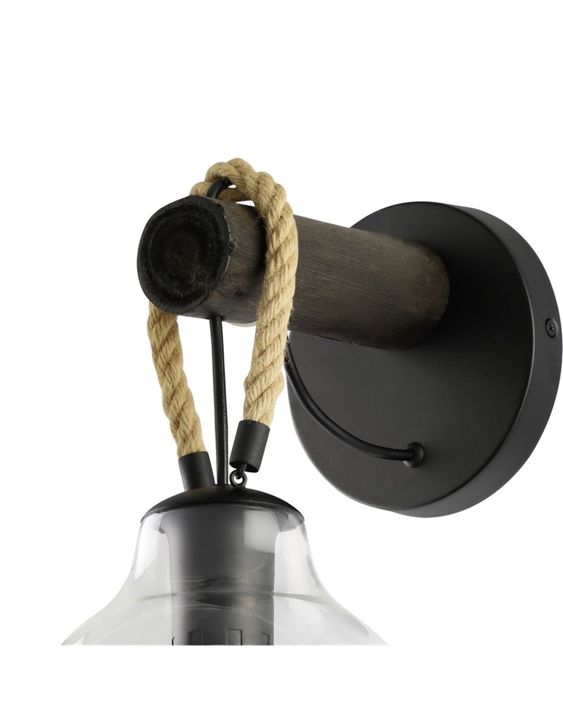 Wandleuchte RODING: Vintage-Design mit Glas-Schirm und Hanfseil