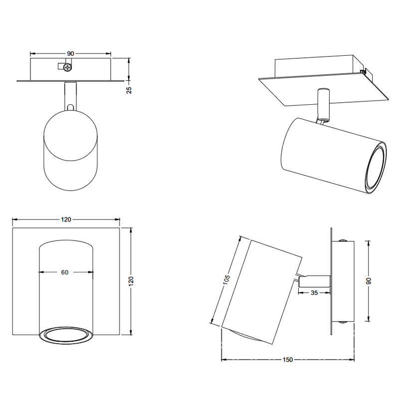 Die Serie Marley hat einen zylindrischen Spot entwickelt, der ein einfaches Design hat, das auf jede Art von Oberfläche zu Hause passt und aus Metall mit inhärenter Widerstandsfähigkeit gefertigt ist. Ihre Maße betragen 12 cm in der Breite, 15 cm in der Höhe und 12 cm in der Tiefe.