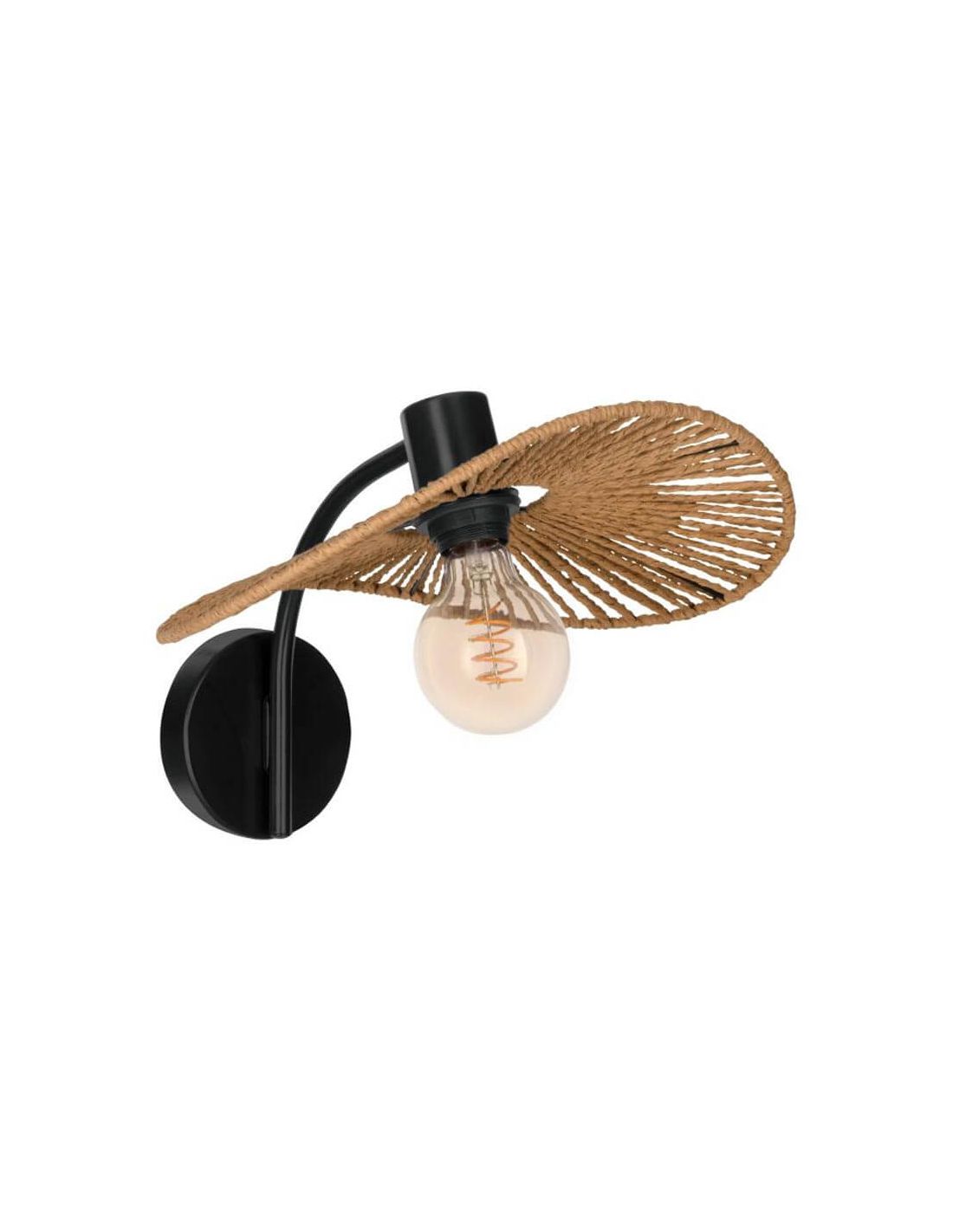 Wandleuchte SIRUELA, rustikales Design mit schwarzem Stahlrahmen und ovale Naturfasern-Schirm. Kompatibel mit E27-Glühbirnen, perfekt, um einladende und moderne Umgebungen zu schaffen. Keine Glühbirne enthalten.