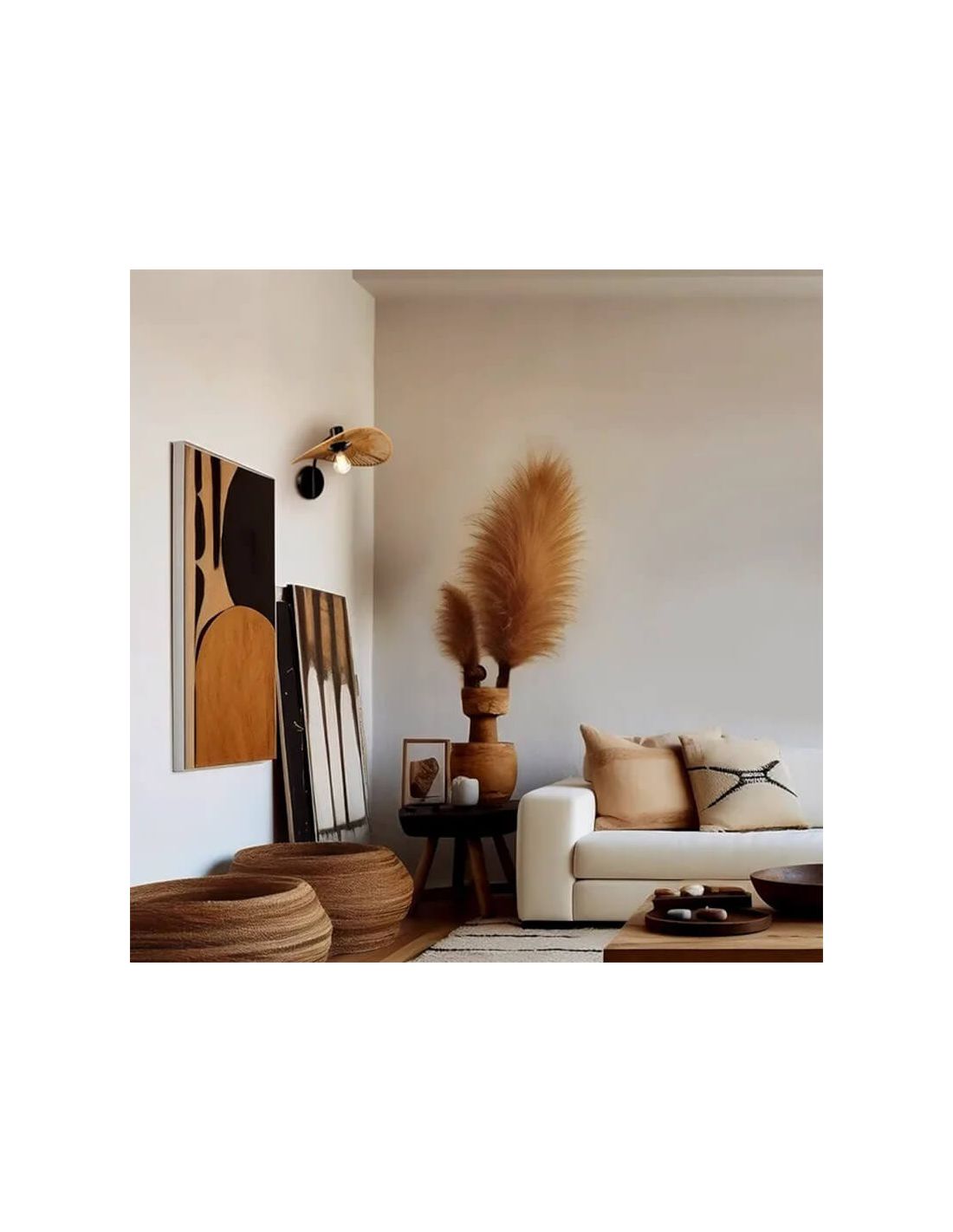 Die Wandleuchte aus Naturfasern und schwarzem Stahl SIRUELA ist ein markantes Stück, das die Eleganz des schwarzen Stahls mit der Wärme der Naturfasern kombiniert. Diese Lampe hat ein einzigartiges Design mit ovalem Schirm, das perfekt zu jedem rustikalen oder modernen Dekorationsstil passt. Mit den Abmessungen von 36,5 cm Länge, 25 cm Höhe und 35 cm Tiefe ist diese Lampe ideal für Wohnzimmer, Schlafzimmer oder jeden Raum, in dem man mit einem natürlichen Designakzent hervorstechen möchte.