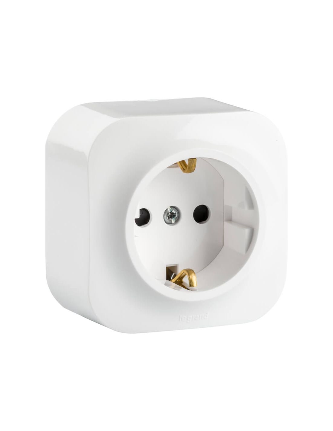 Wandstecker Legrand Forix 782420 mit 1 Schuko-Steckdose (2P+T) von 16A – 230V, Aufputzmontage. Farbe hochglänzend weiß. Kompakte und sichere Bauweise für den Hausgebrauch oder professionellen Einsatz.