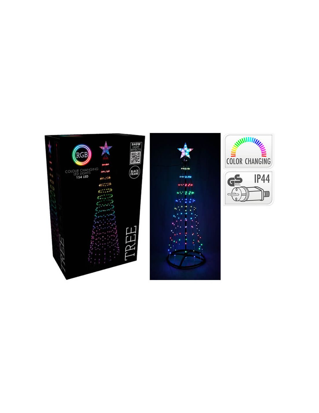 Verwandle dein Zuhause in eine festliche Umgebung mit dem LED-Weihnachtsbaum außen 1,5 m RGB mit Fernbedienung, einem modernen Dekorationsstück, das Energieeffizienz, Design und einen mehrfarbigen Effekt kombiniert. Seine schwarze Metallstruktur und die RGB-Digitalbeleuchtung bieten eine elegante und professionelle Ästhetik, ideal um Terrassen, Gärten, Balkone, Schaufenster oder Inneneinrichtungen zu dekorieren.