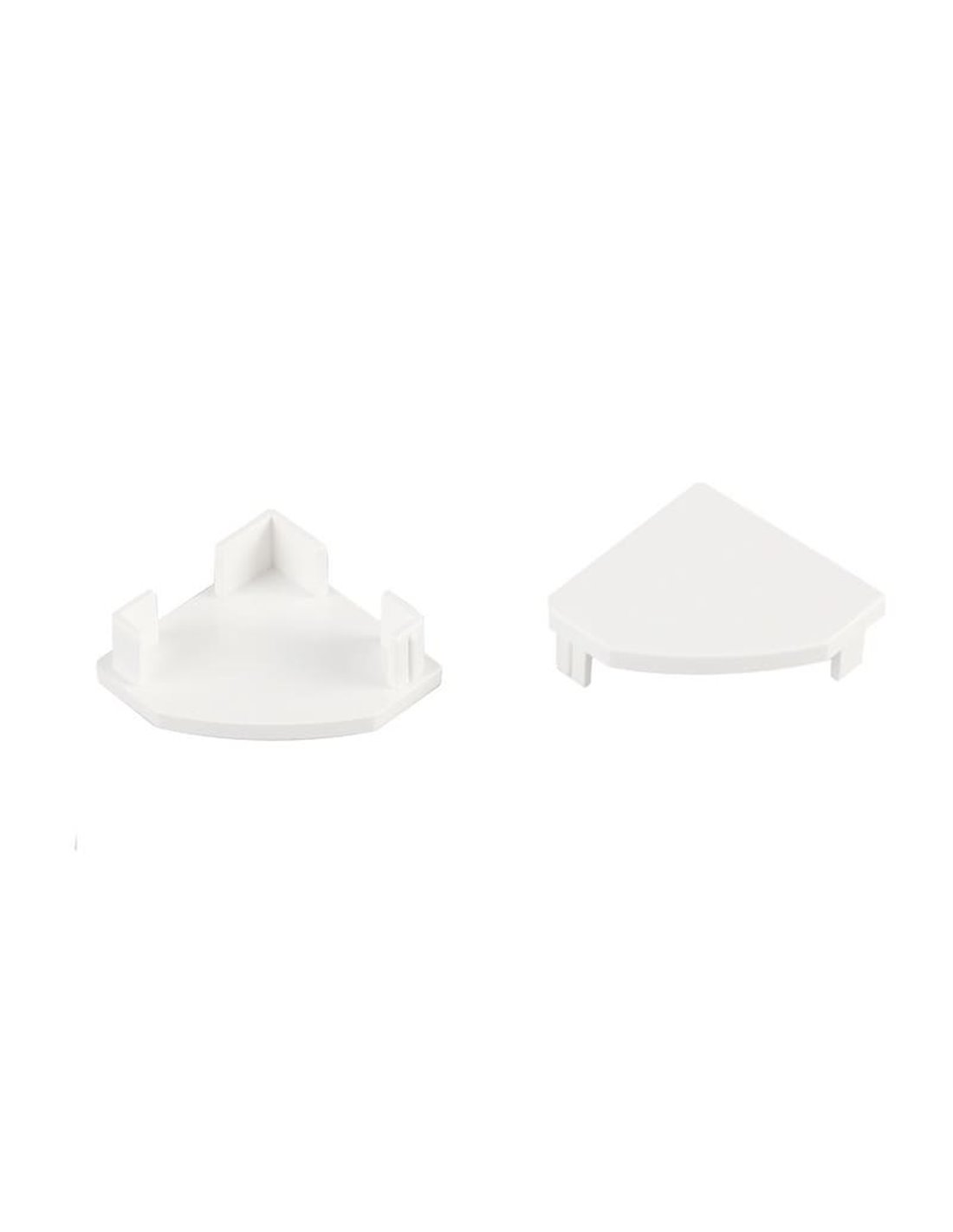Weiße Abdeckung ohne Loch für das Eckenprofil 2000x18x18mm, ideal für ein elegantes und sicheres Finish von Installationen von LED-Streifen. Kompatibel mit Profilen der Marke Mantra.