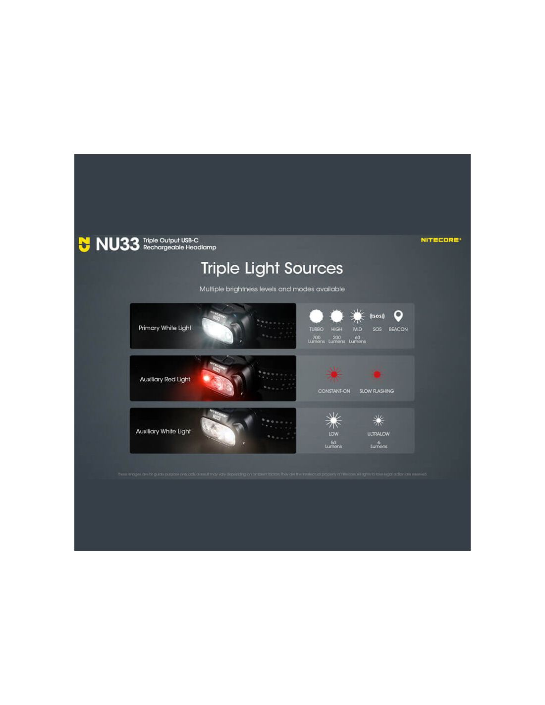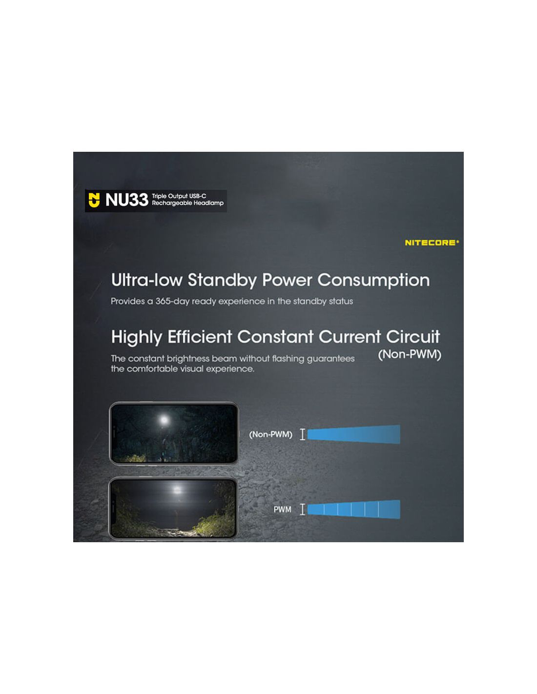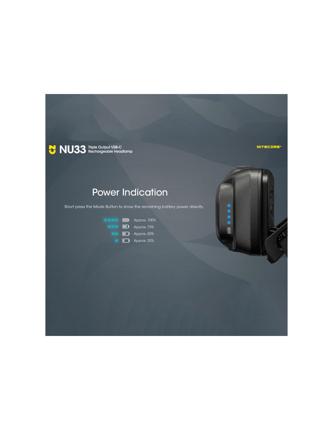 Die wiederaufladbare LED Stirnlampe NU33 von Nitecore ist über USB-C schnell aufladbar, mit einer maximalen Leistung von 700lm, einer maximalen Reichweite von 135 Metern und einer Akkulaufzeit von 147 Stunden, stoßfest bis zu 1 Meter und einem IP66-Schutzgrad gegen Wasser und Staub (Schutz gegen Staub und Spritzwasser).